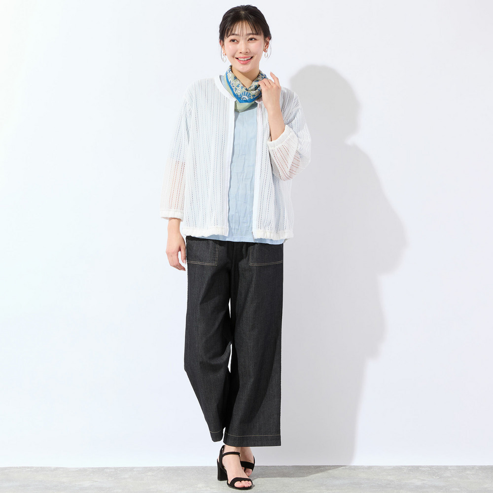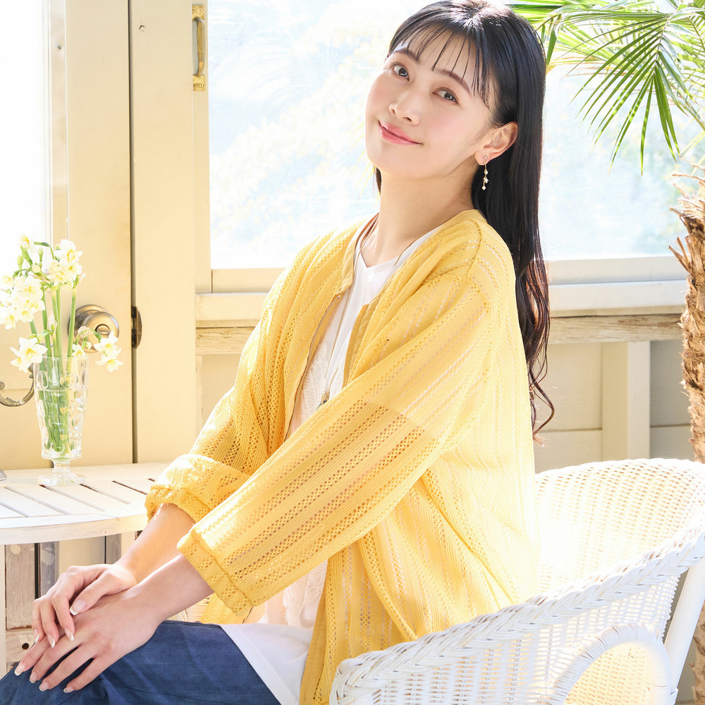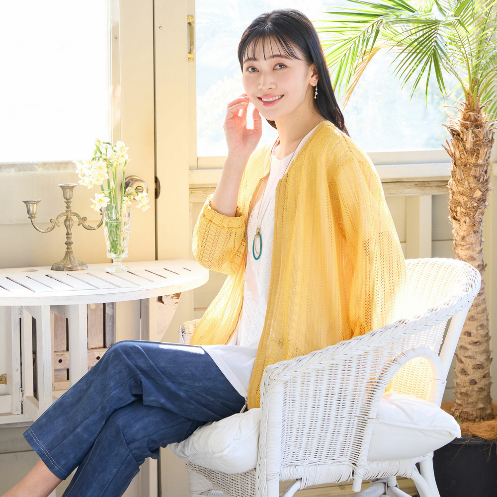 ほんのりと肌が透け、Tシャツやワンピースの羽織りとして軽快に楽しめます。