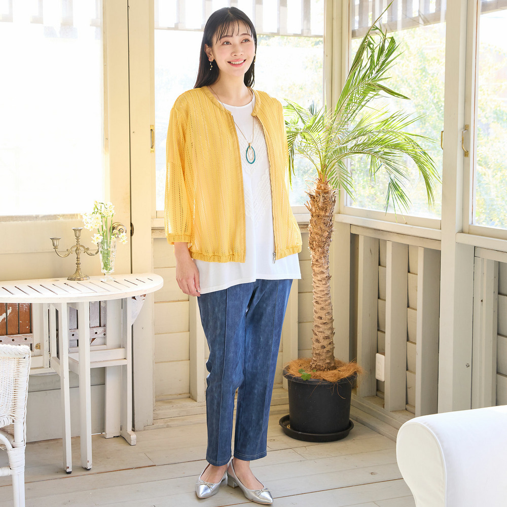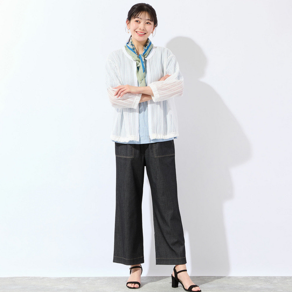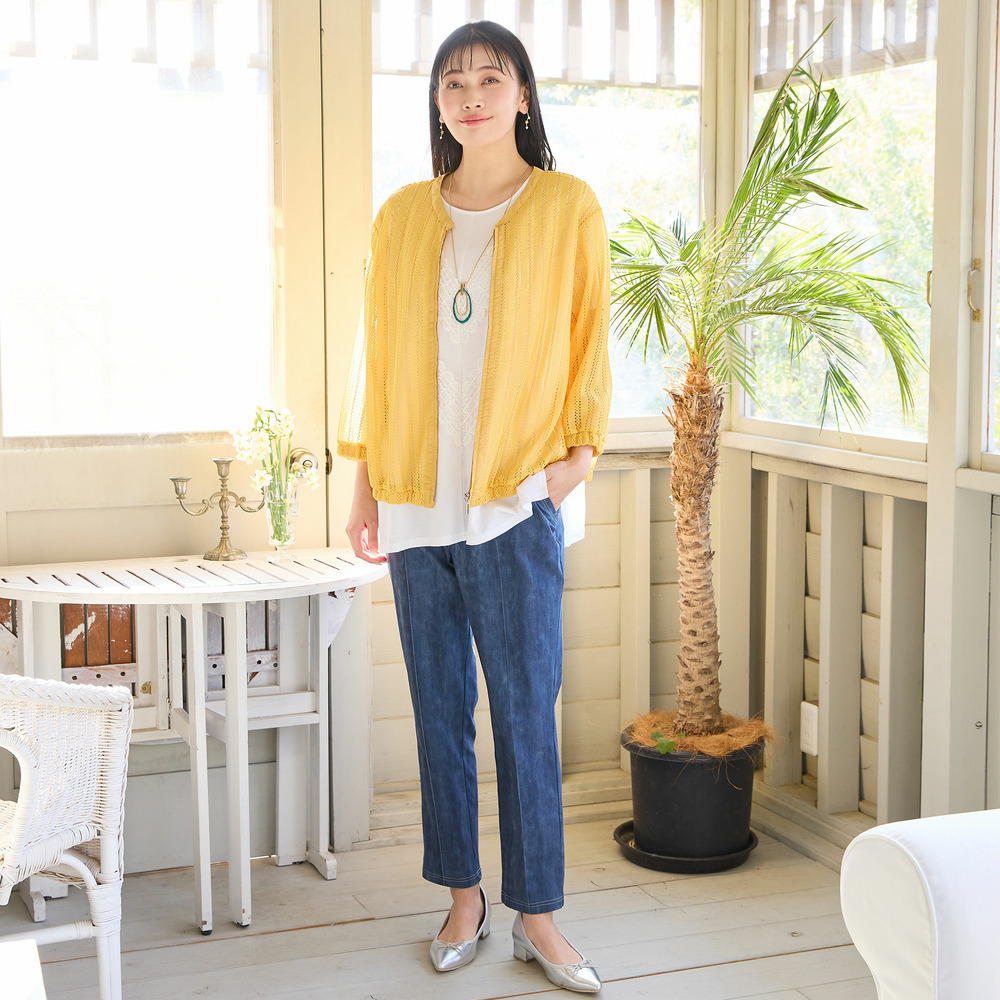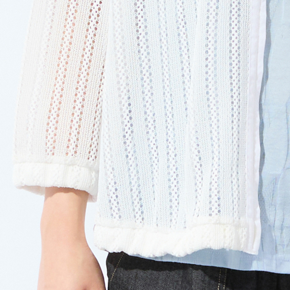 ほんのりと肌が透け、Tシャツやワンピースの羽織りとして軽快に楽しめます。