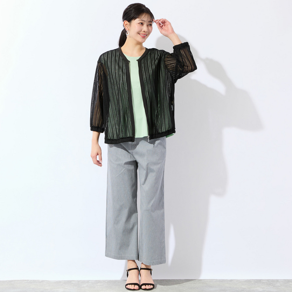 ストライプ調の柄で可愛くなりすぎず、スッキリとした印象で羽織っていただけます。