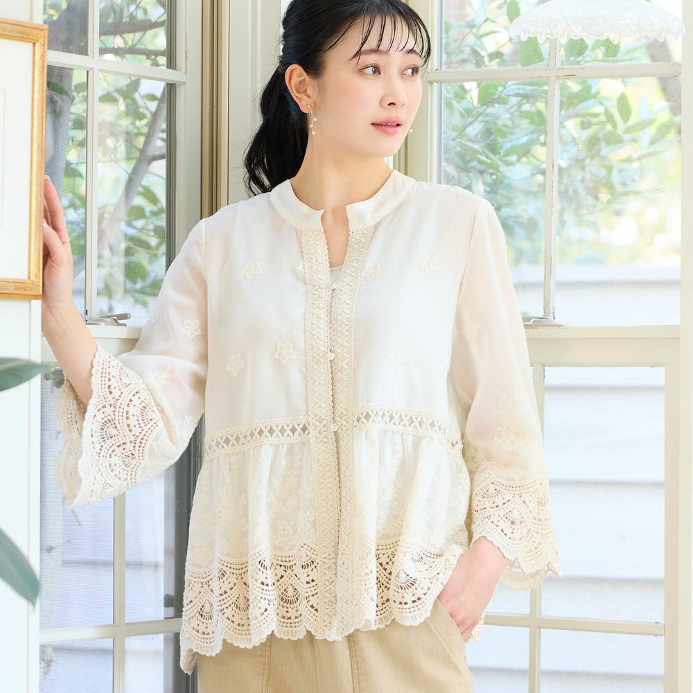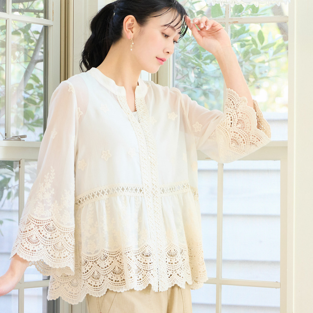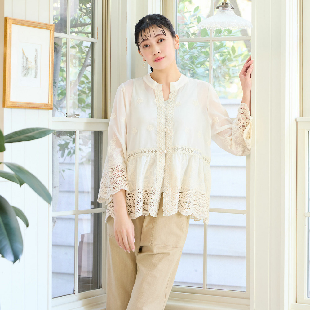 • 【洗える・M~3Lサイズ】レース刺繍ブラウス1