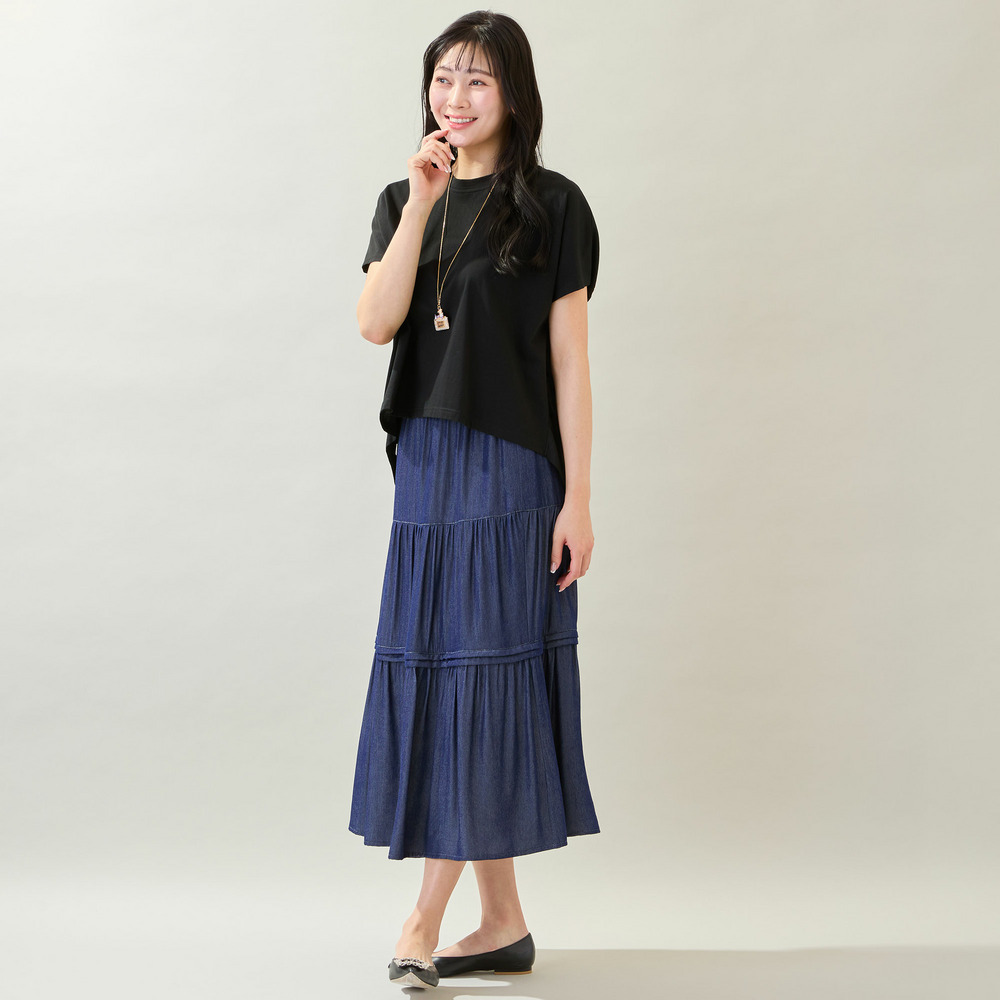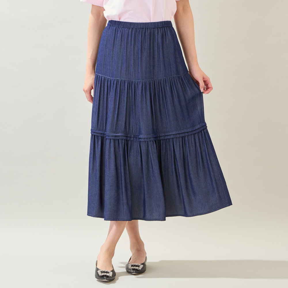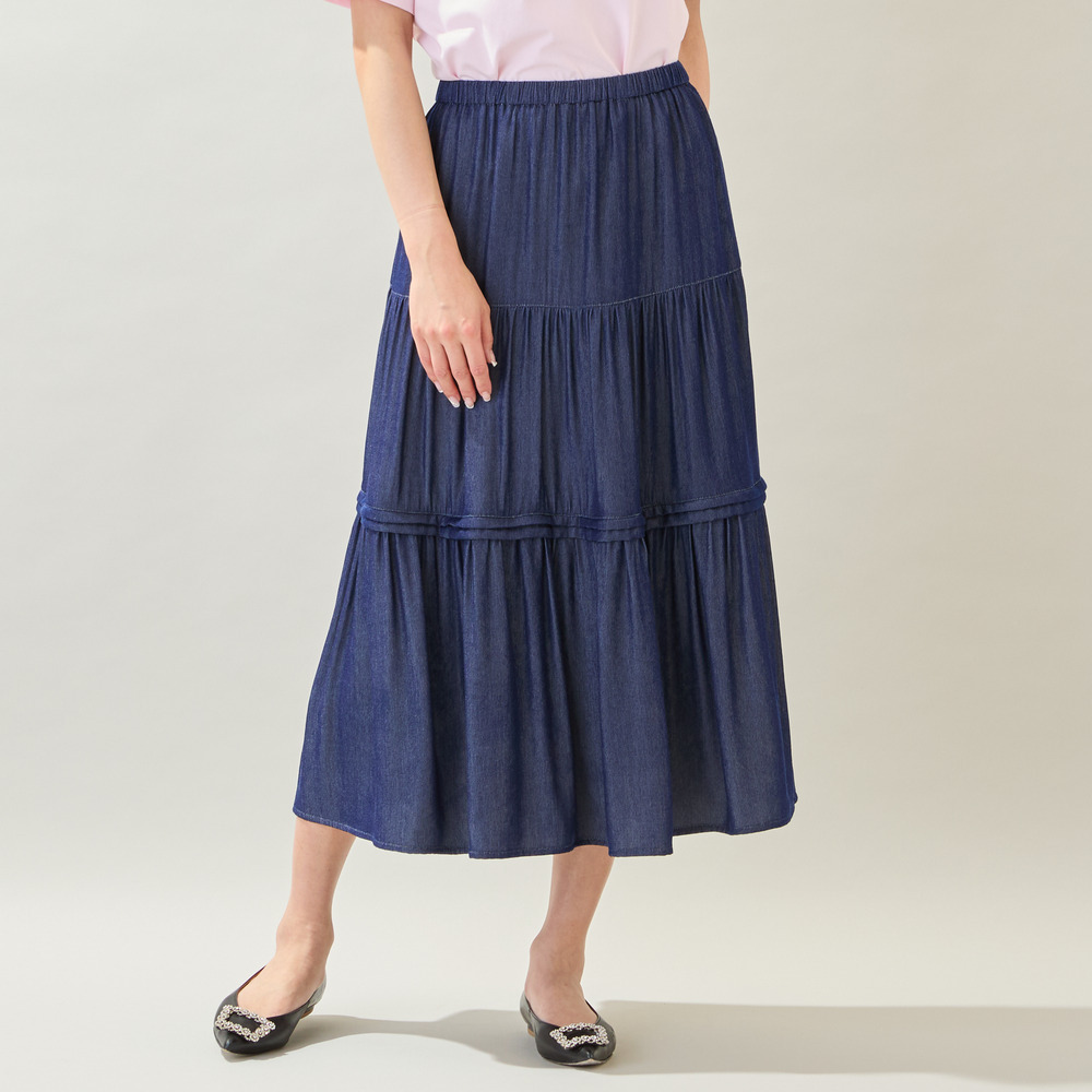 【洗える・M~3Lサイズ】ティアードスカート(ネイビー)