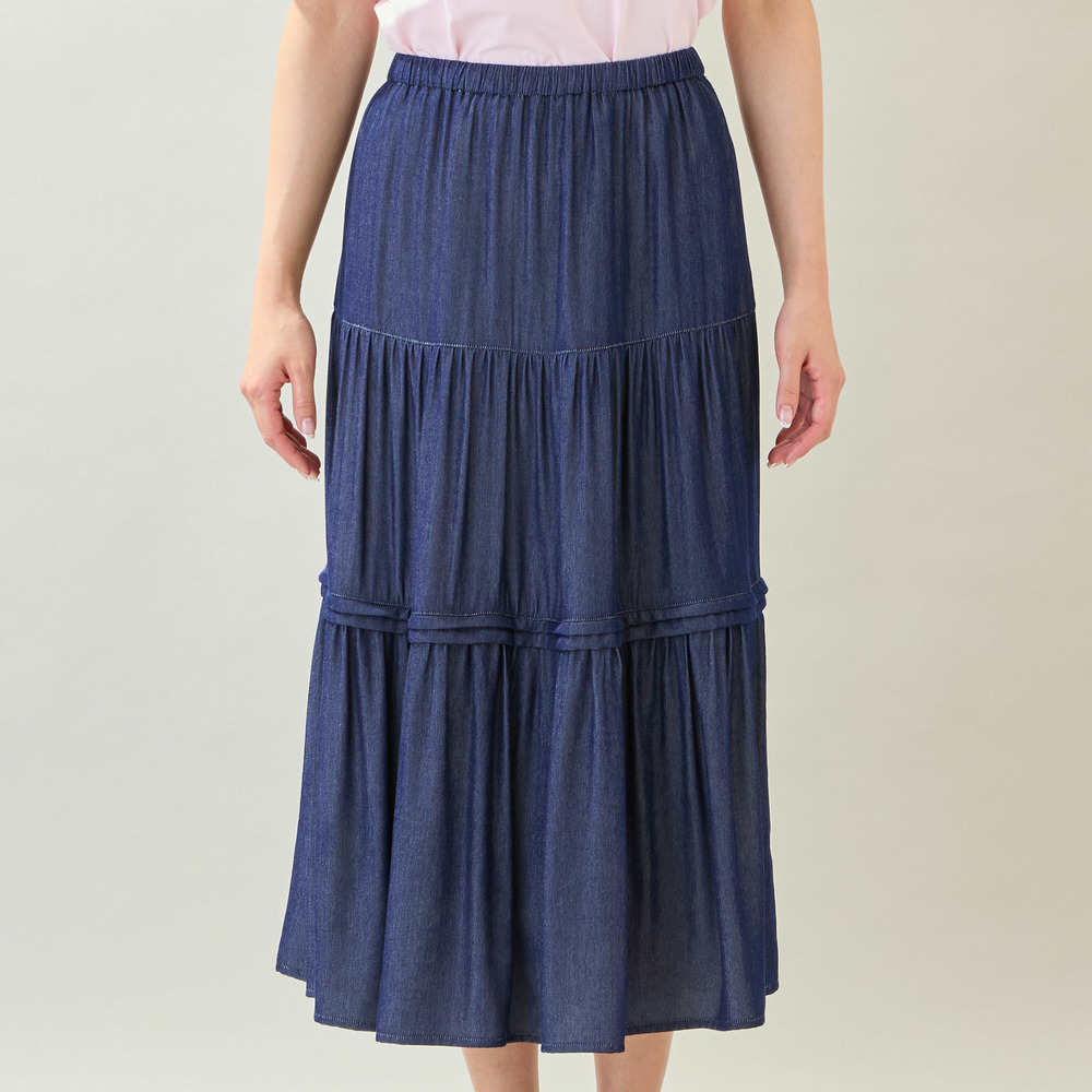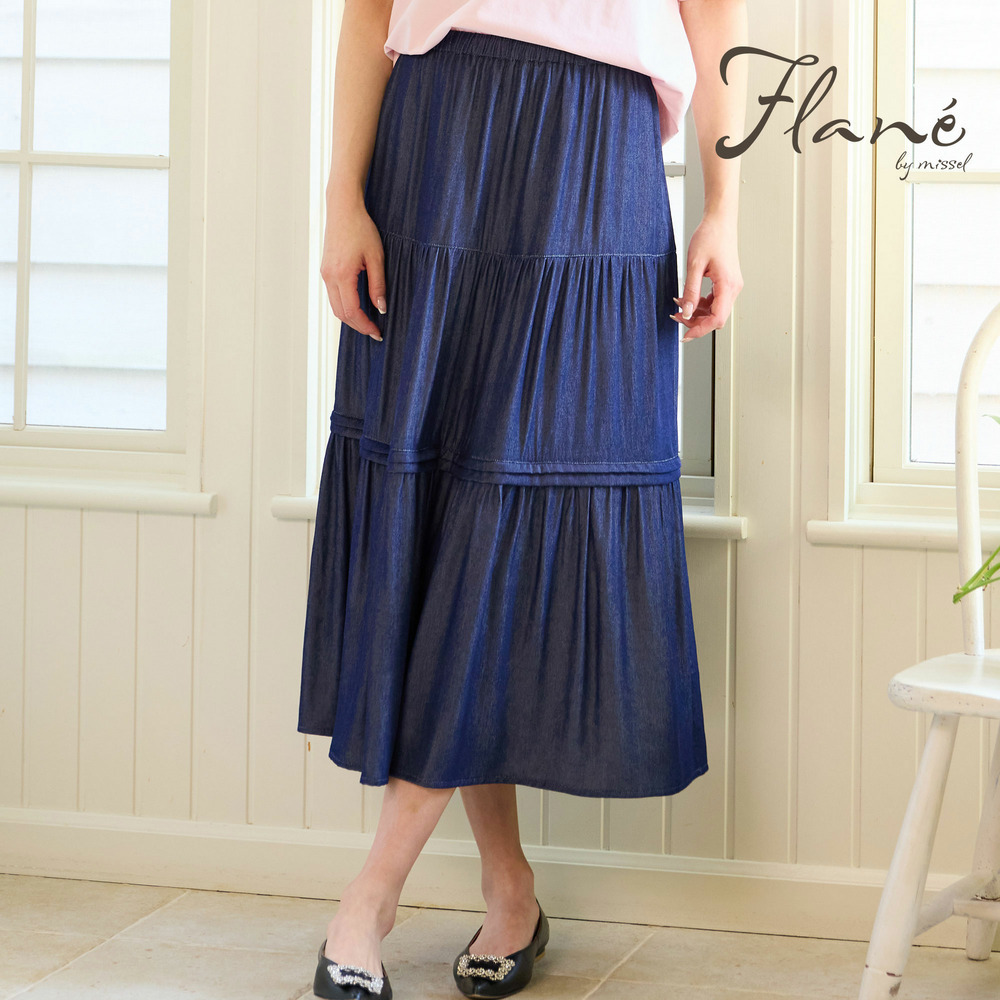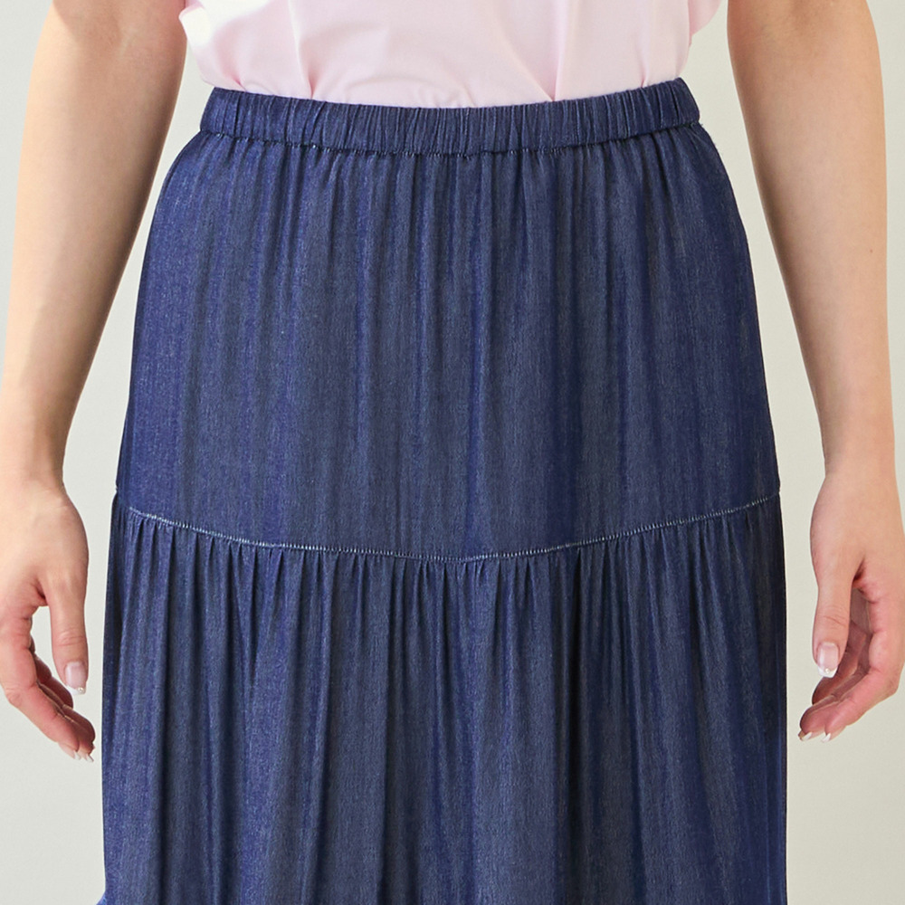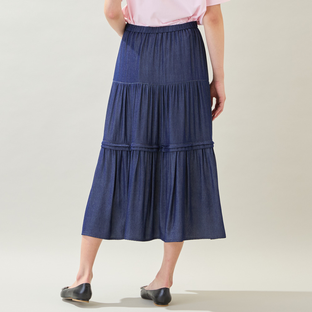 【洗える・M~3Lサイズ】ティアードスカート(ネイビー)