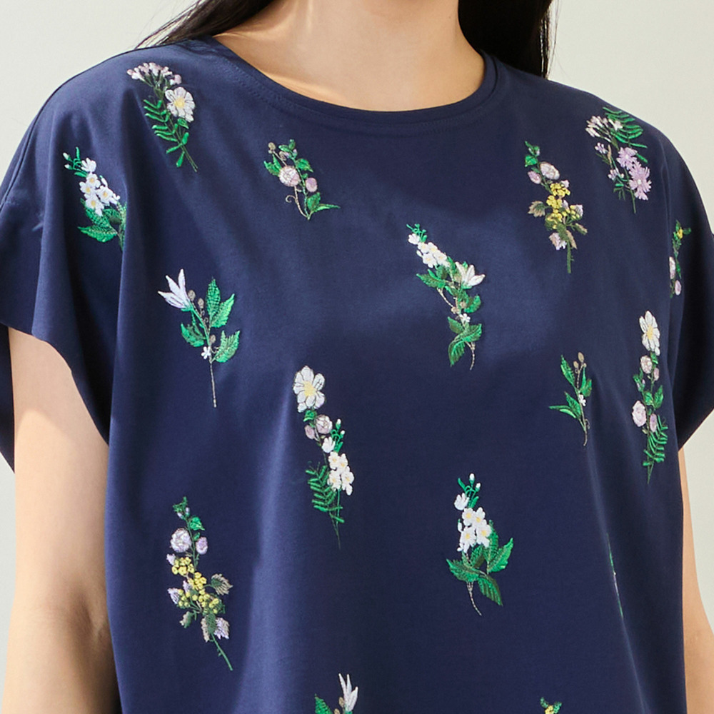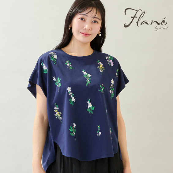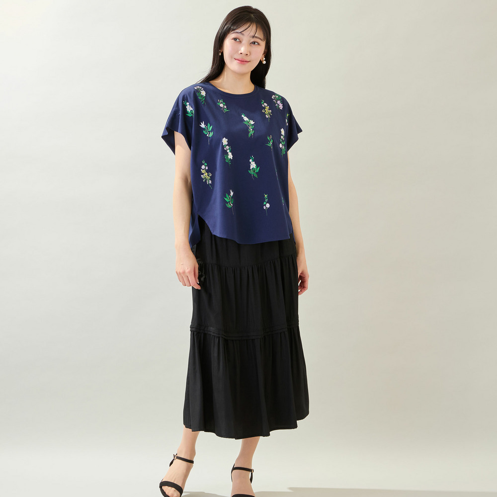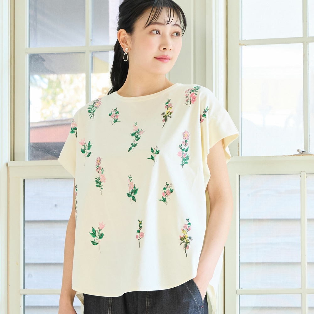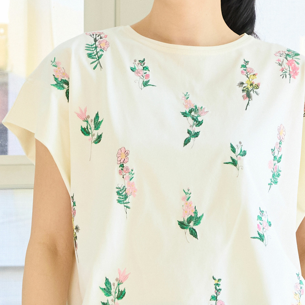 • 【洗える・3Lサイズあり】フラワー刺繍ワイドプルオーバー1