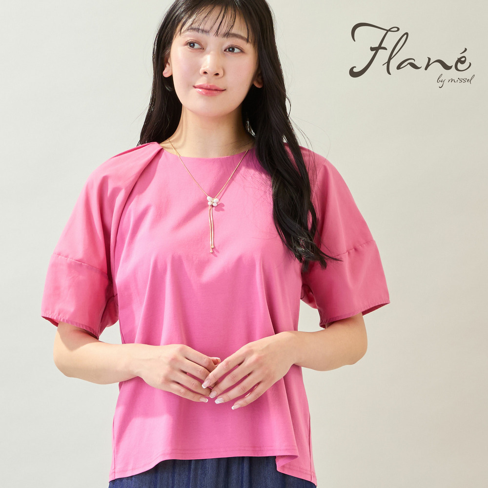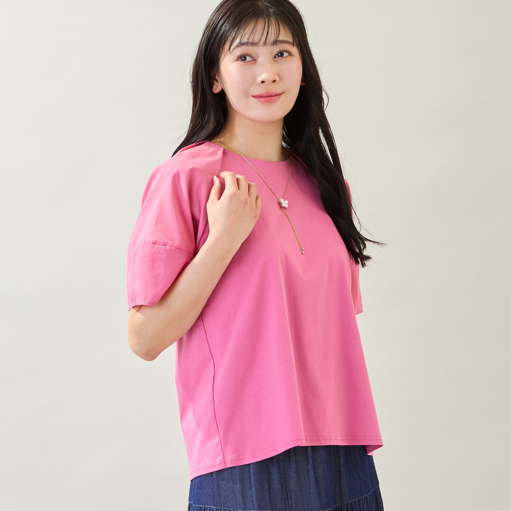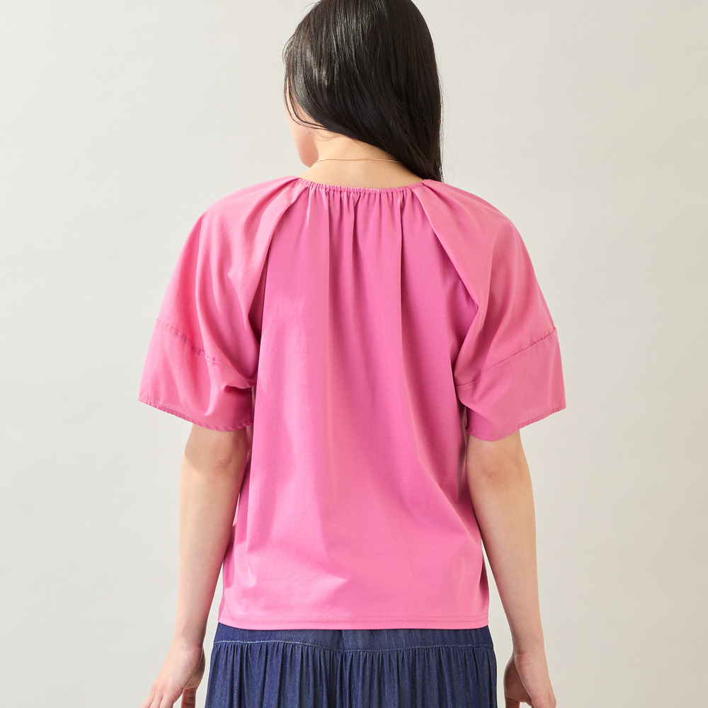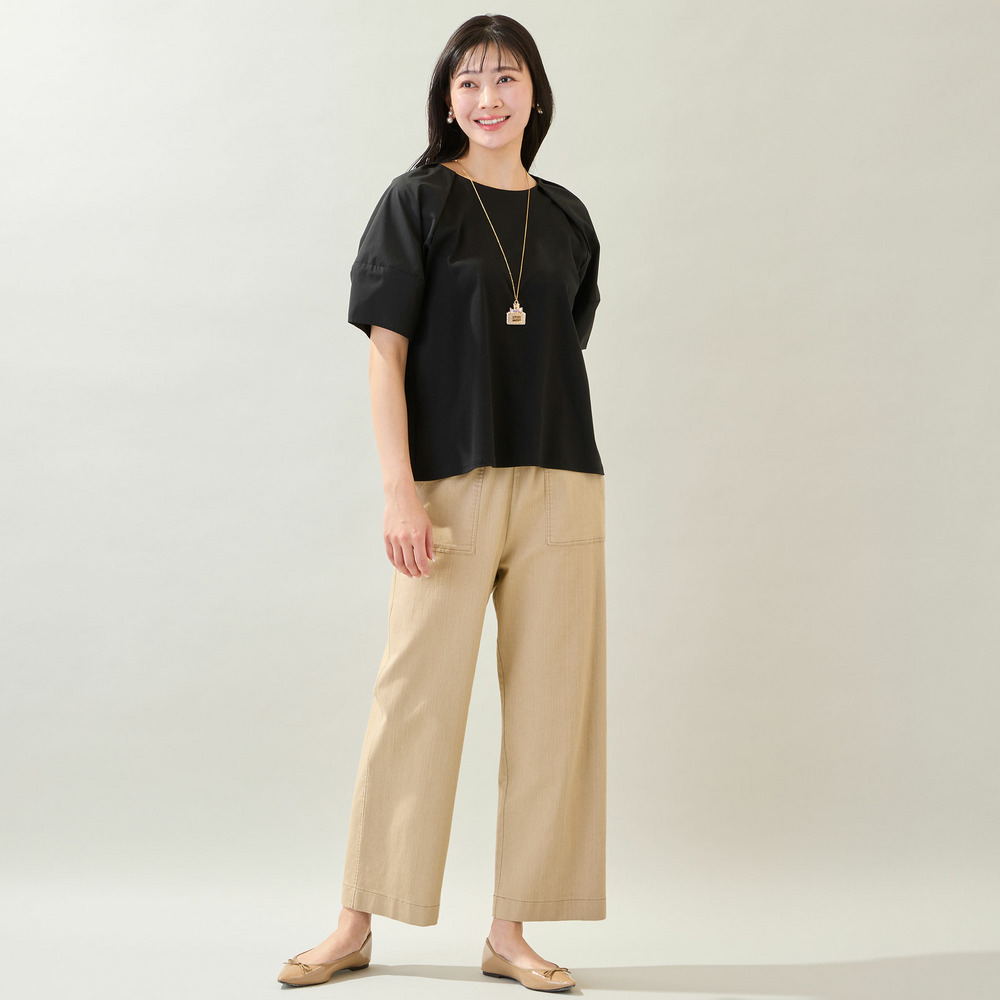 ボディ部分はきれいめなコットンスムースを使用しており、品よく着られるのもポイントです。