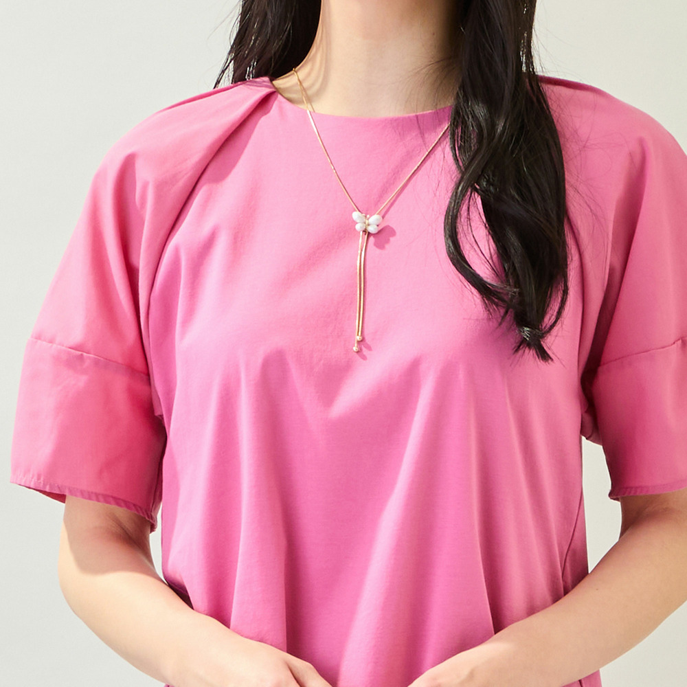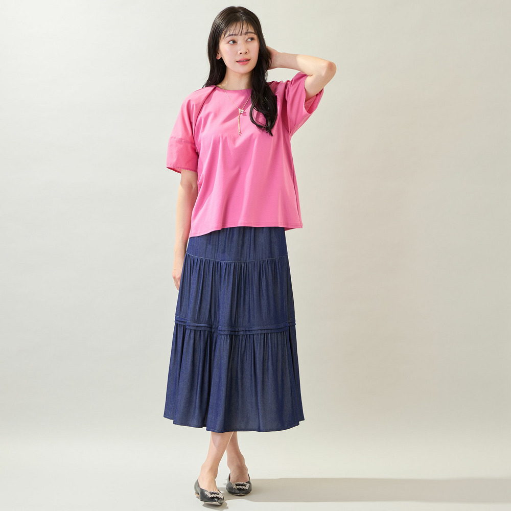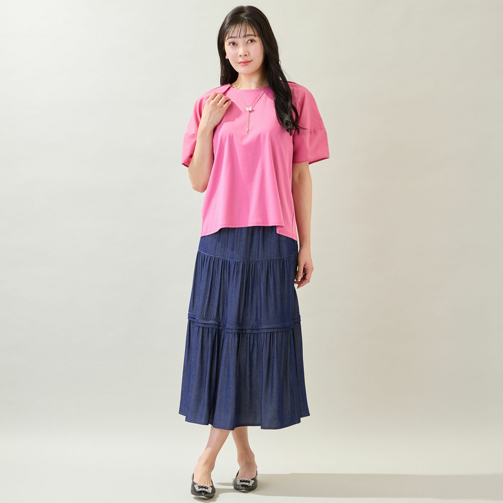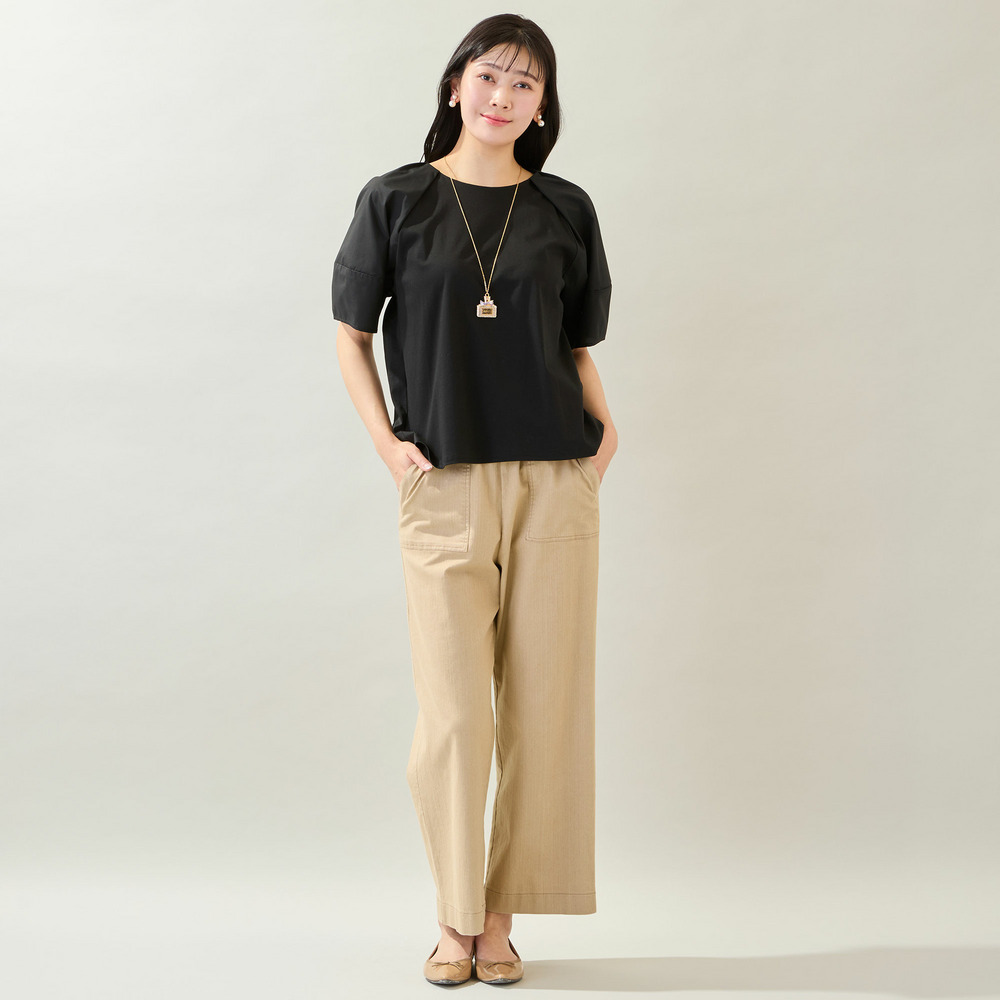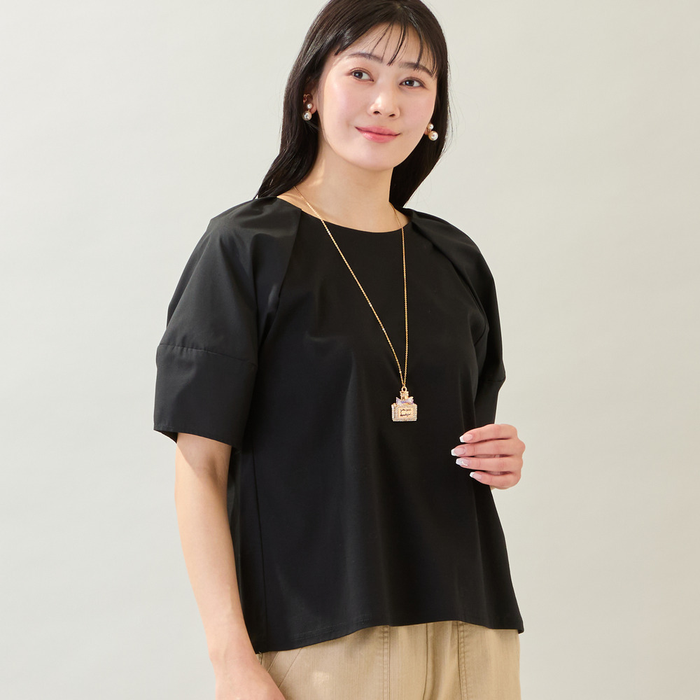 ボディ部分はきれいめなコットンスムースを使用しており、品よく着られるのもポイントです。