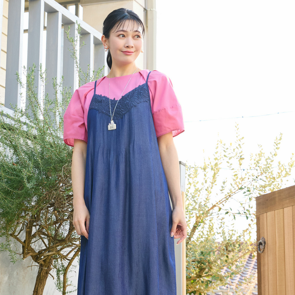 モデル着用のようにキャミワンピのインナーに合わせても可愛いですね。