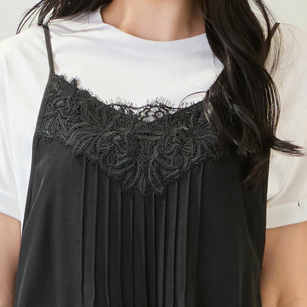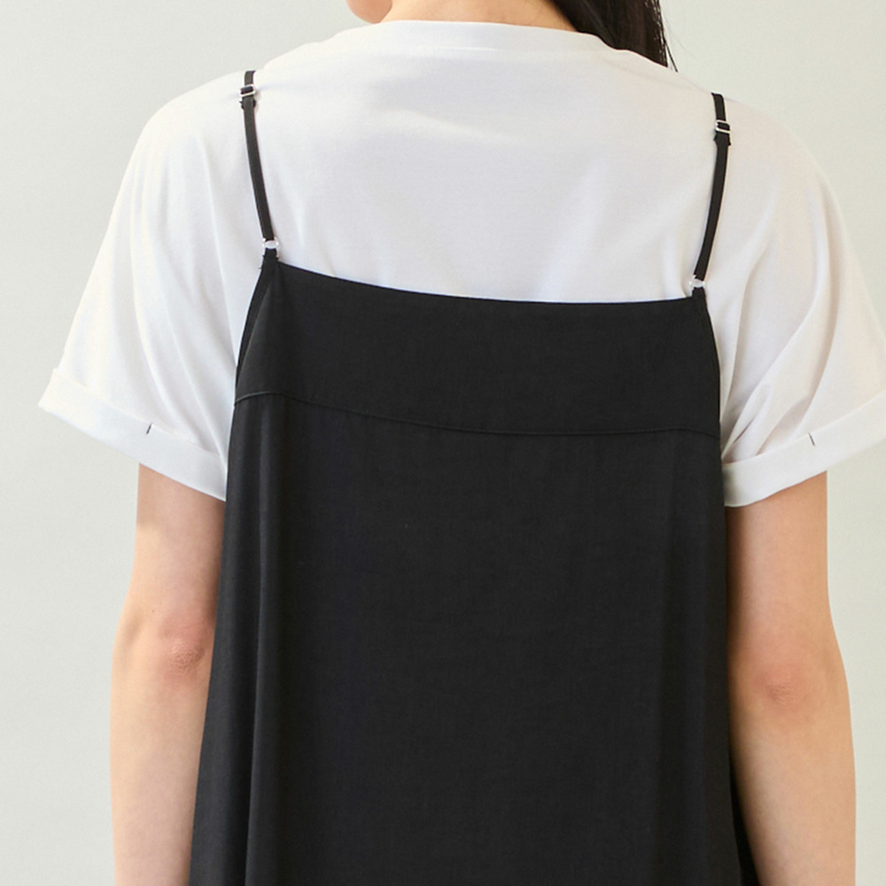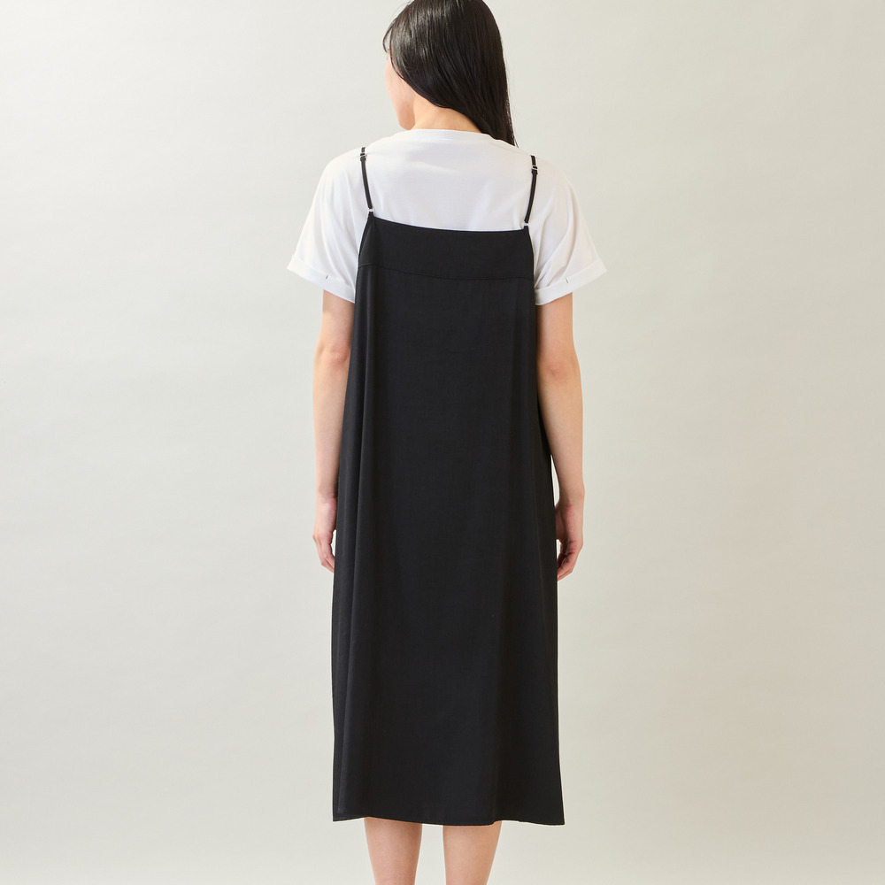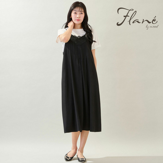 【洗える・体型カバー・M~3Lサイズ】レーストリムキャミワンピース(ブラック)