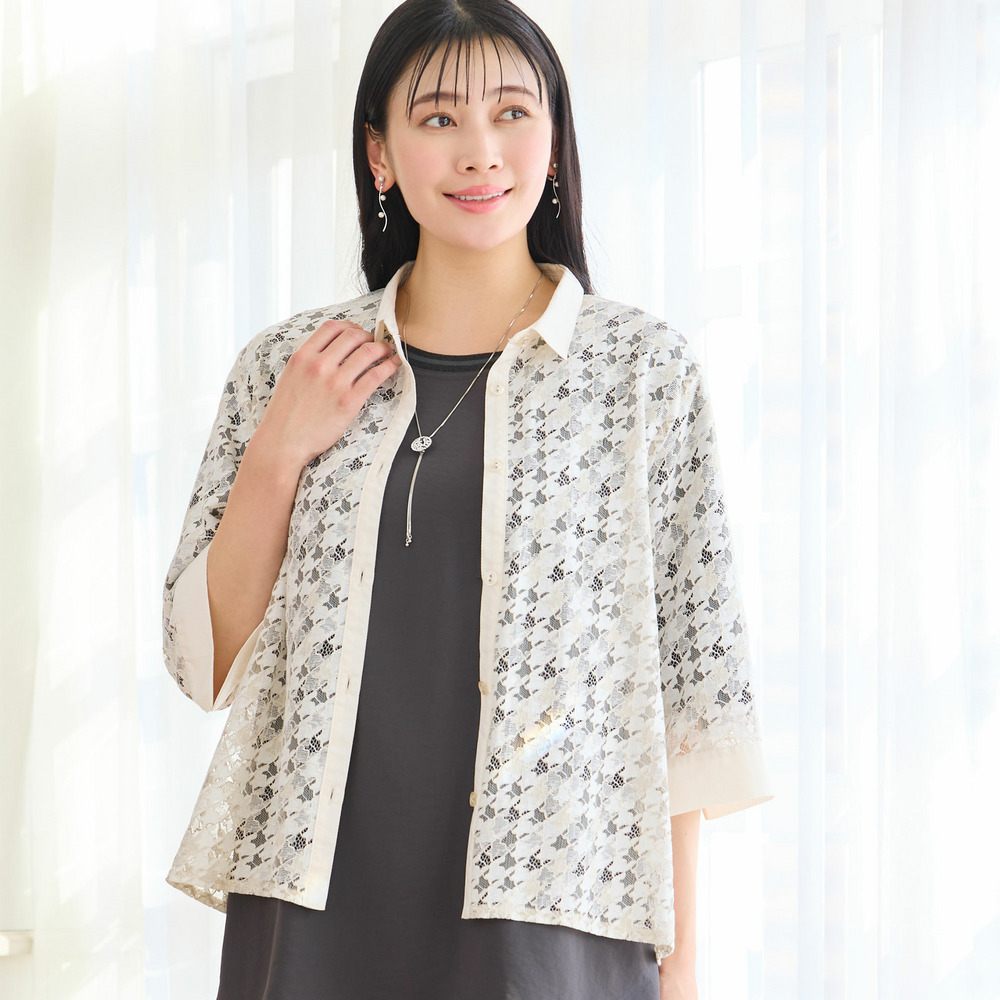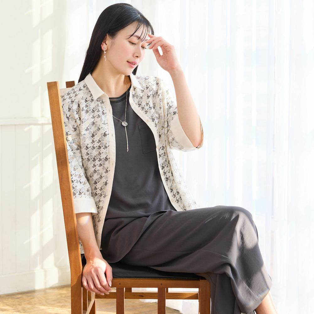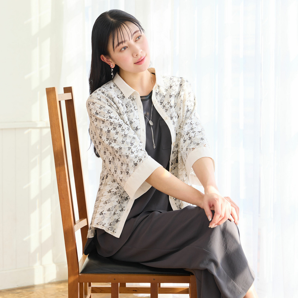 2色で染め分けをした陰影感のある表情が特徴。深みのあるレースは程よい透け感があり、春夏の羽織として活躍してくれます。