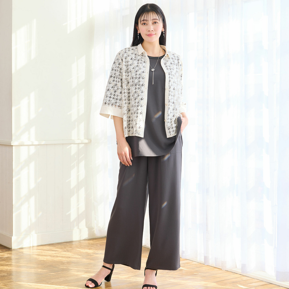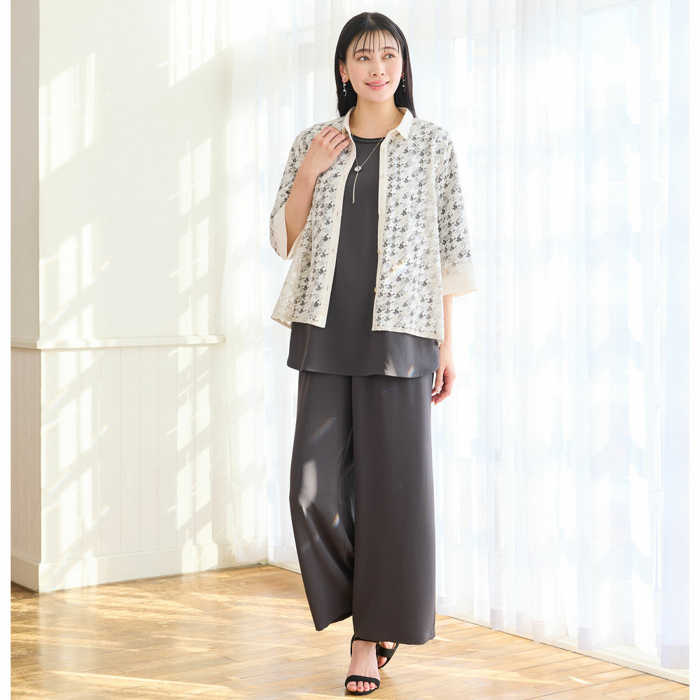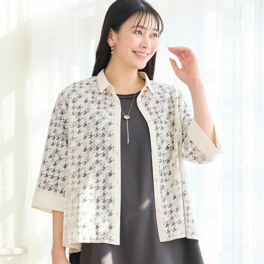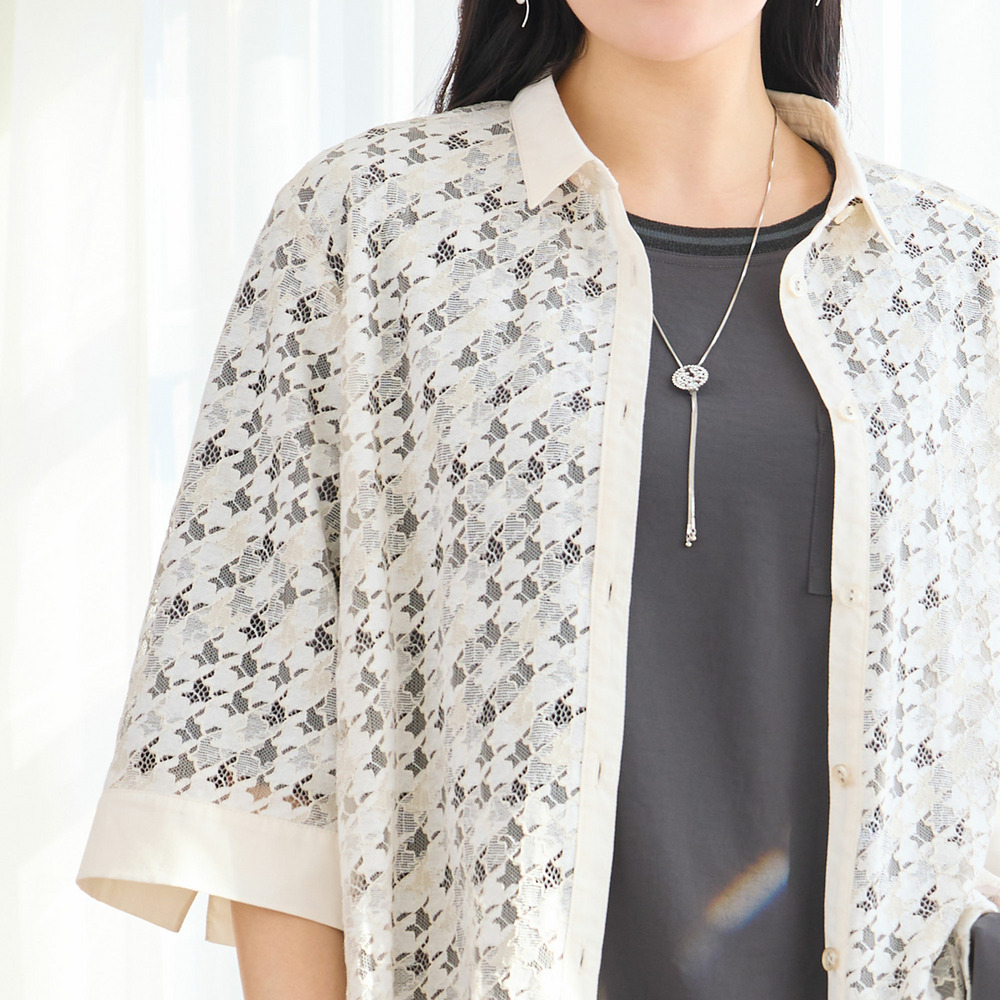2色で染め分けをした陰影感のある表情が特徴。深みのあるレースは程よい透け感があり、春夏の羽織として活躍してくれます。
