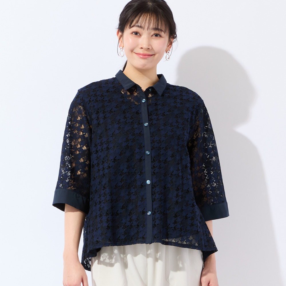 千鳥柄のレースを使ったブラウスです。