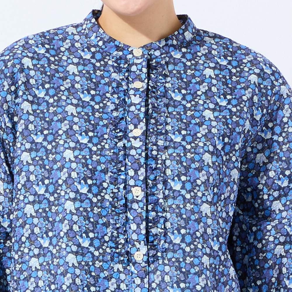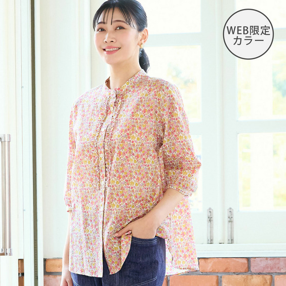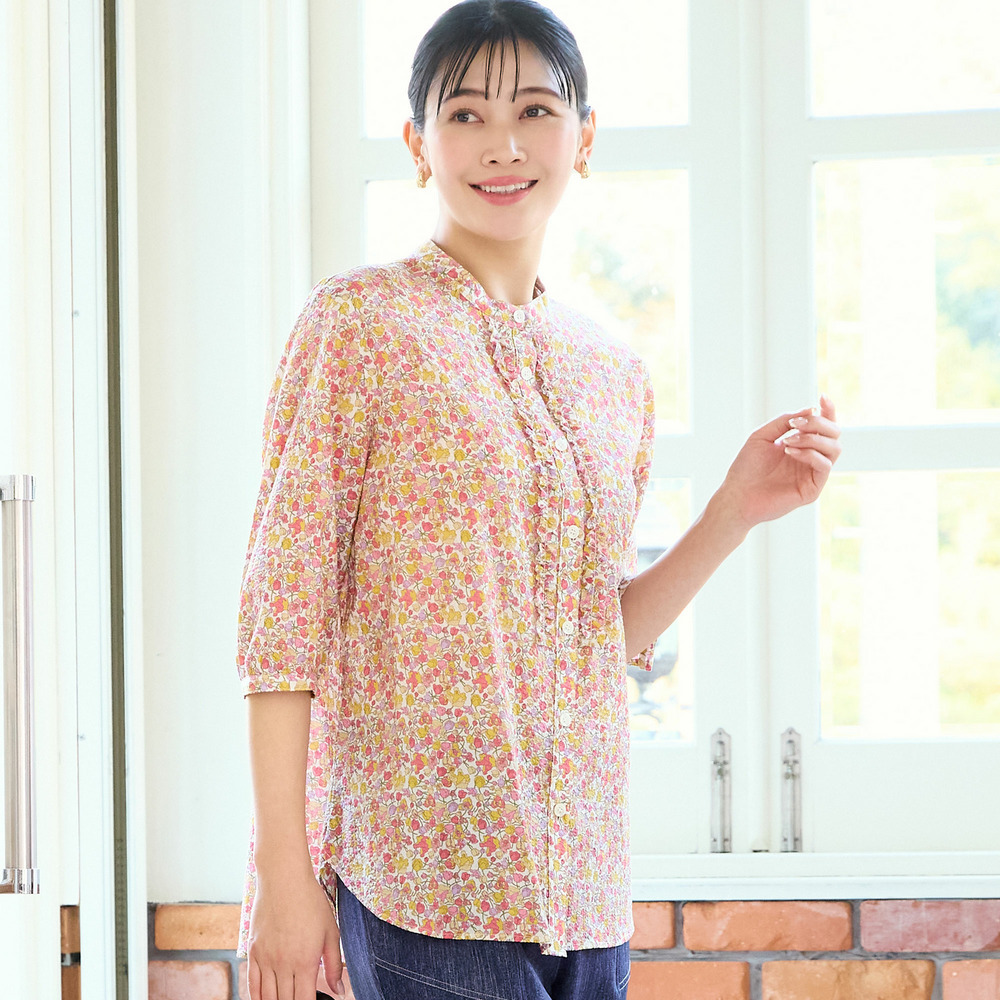 【リバティプリント・洗える・L~4Lサイズ】小花柄コットンフリルシャツ