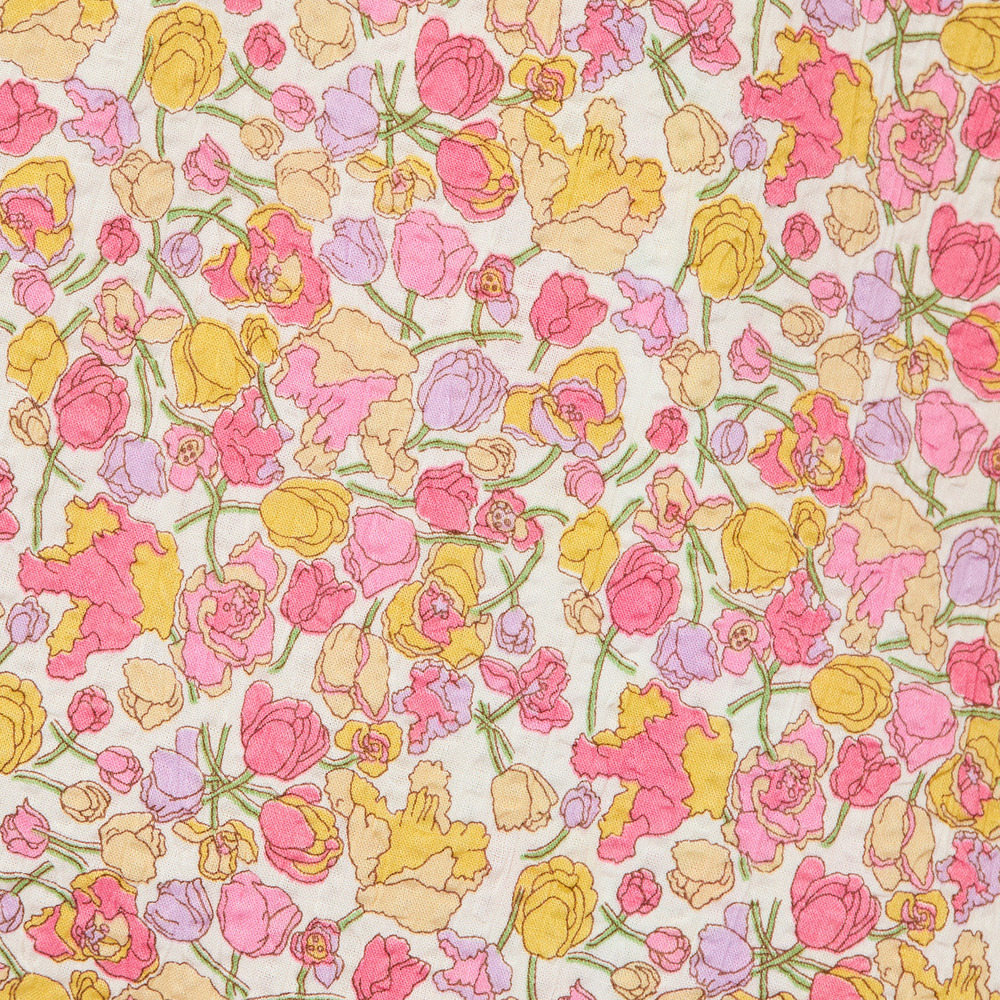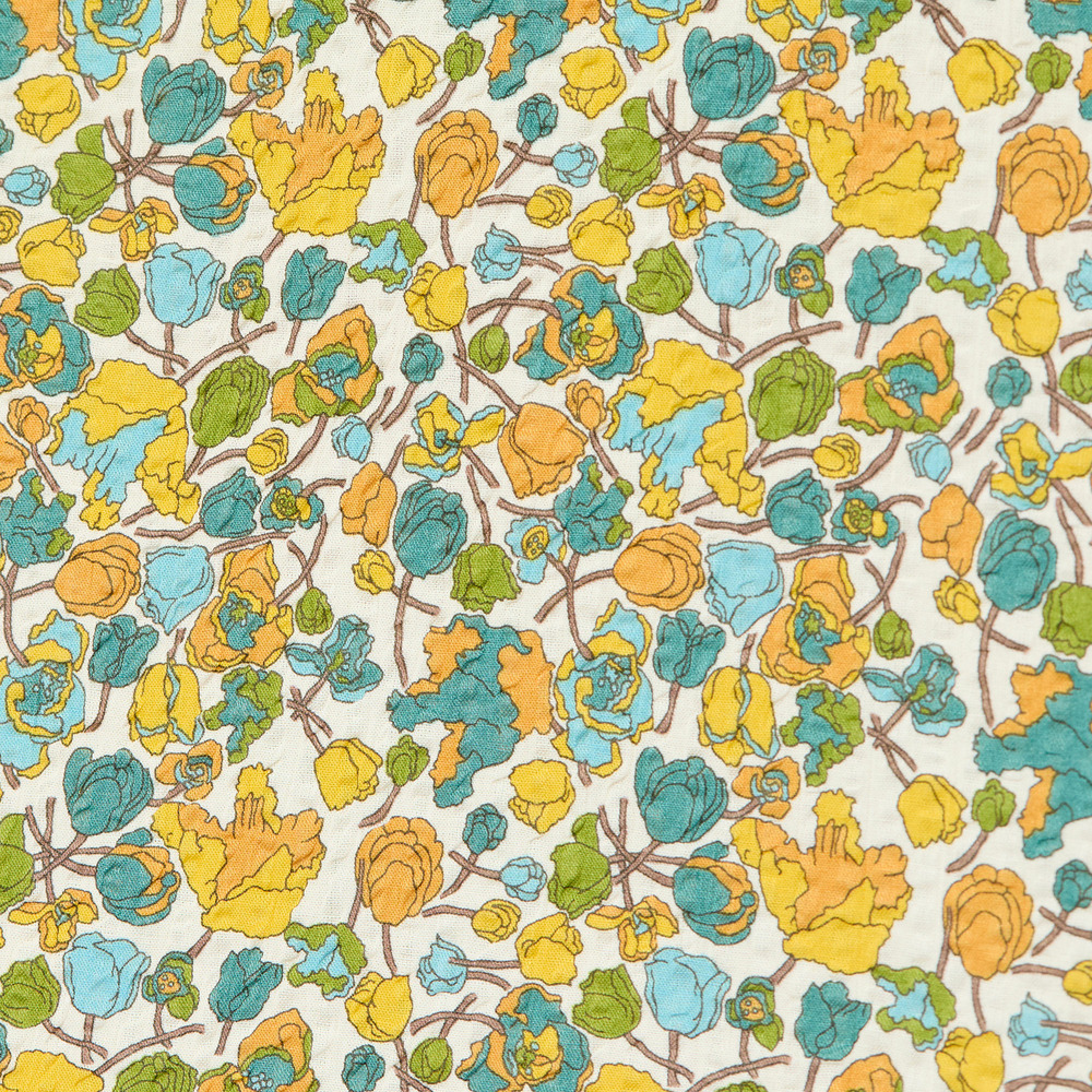 2004年春夏コレクションの柄で、草地にちりばめられた小花がデリケートにレイアウトされたデザインです。