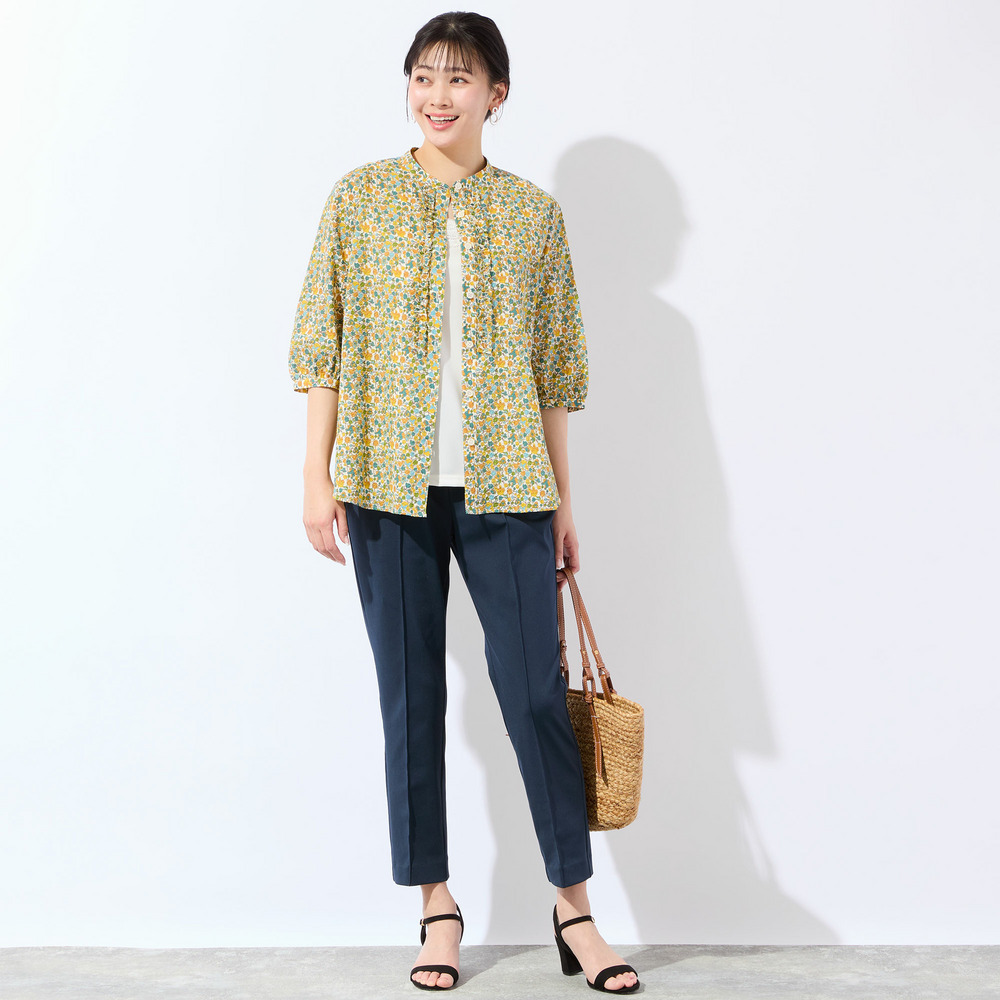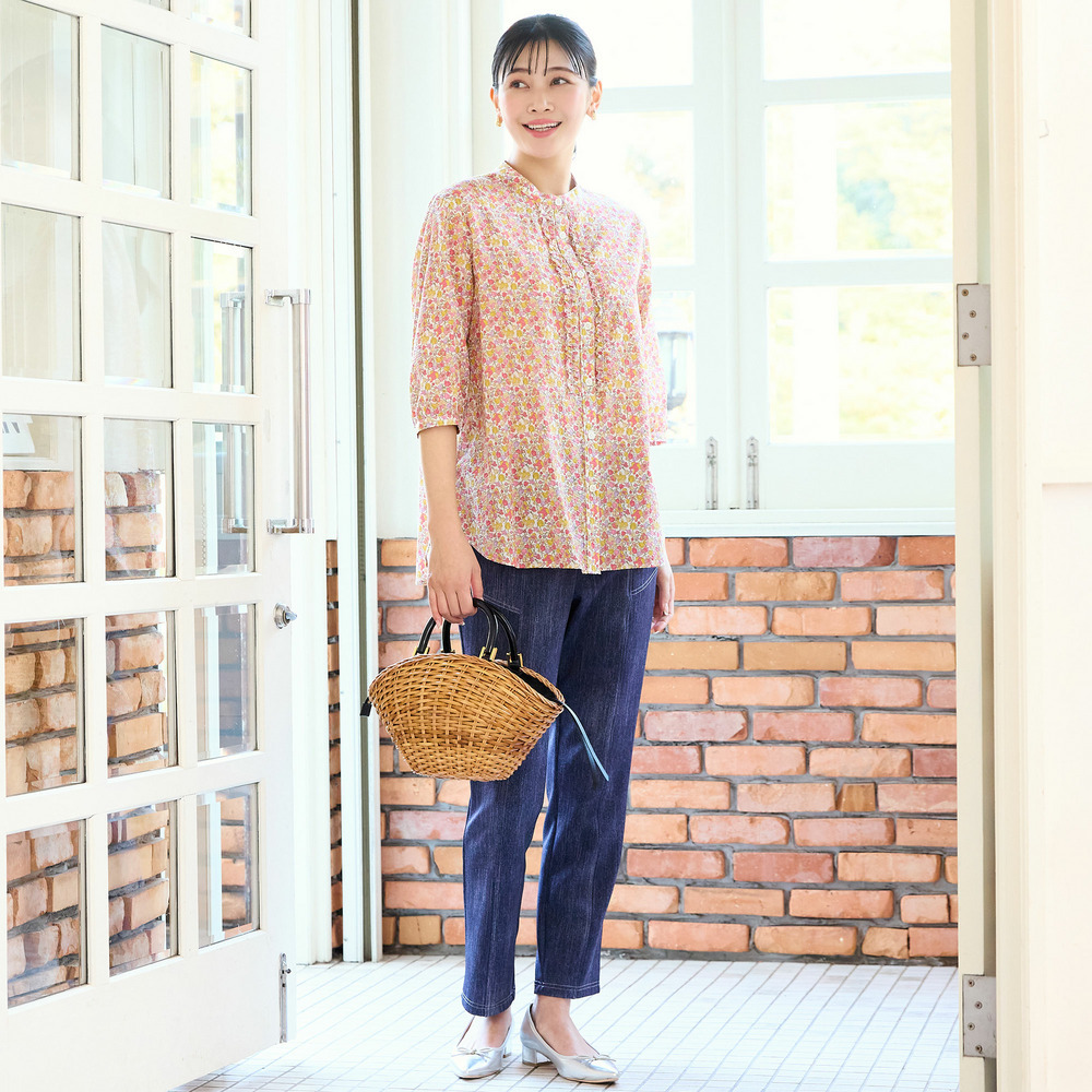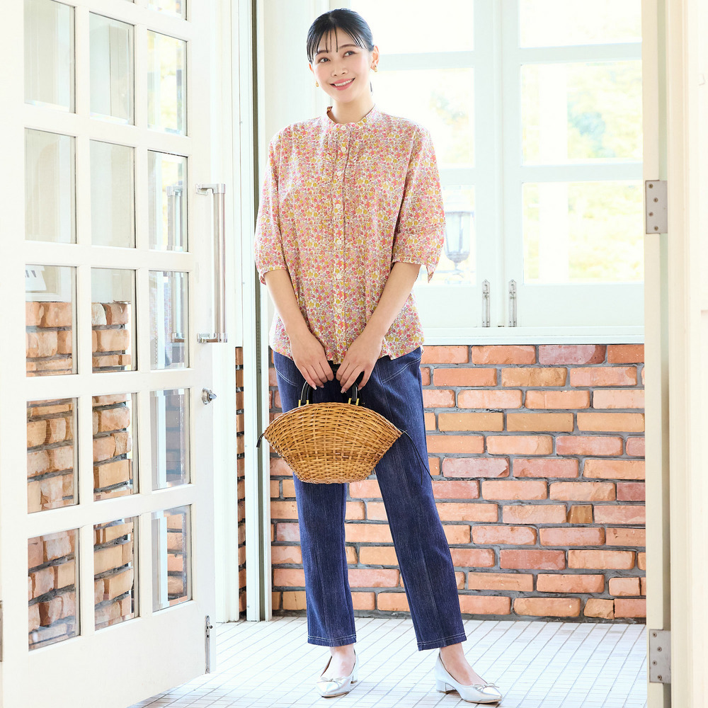 品よく華やぐリバティプリントがスタイルに甘さを添えてくれます。