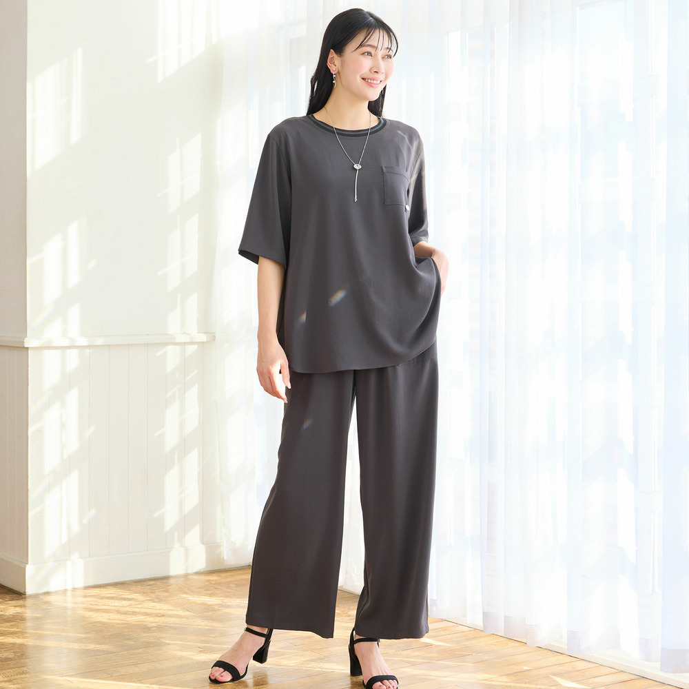 弱ストレッチ性があり、シルエットにゆとりがあるのでリラックス感のある着心地も魅力です。