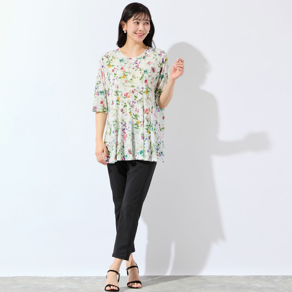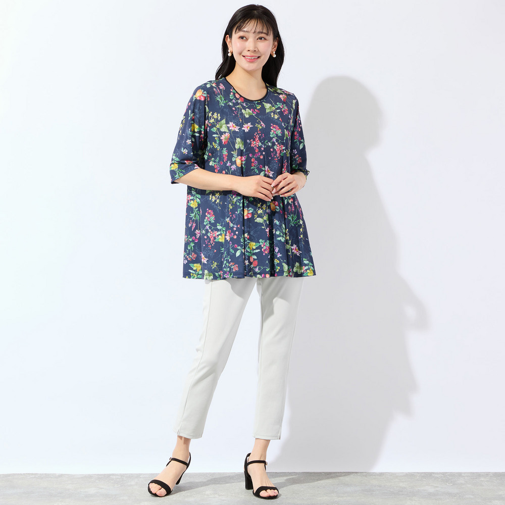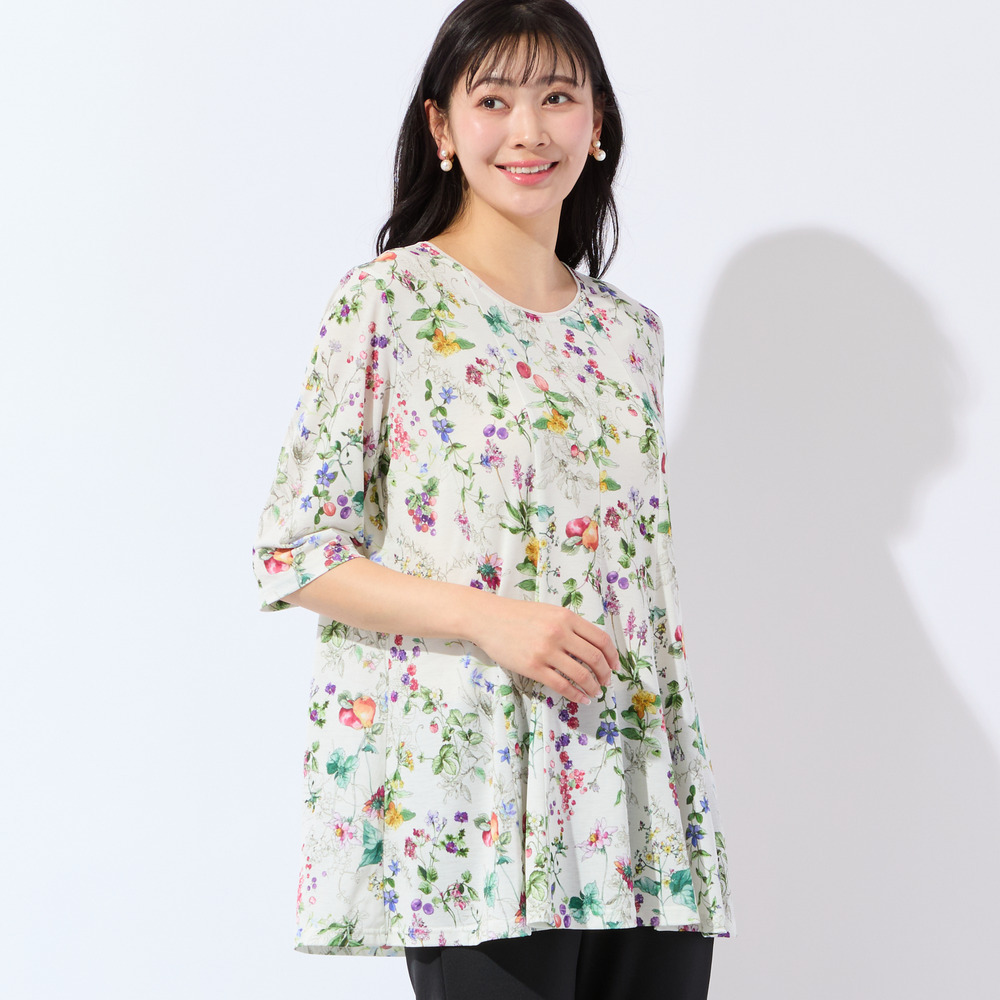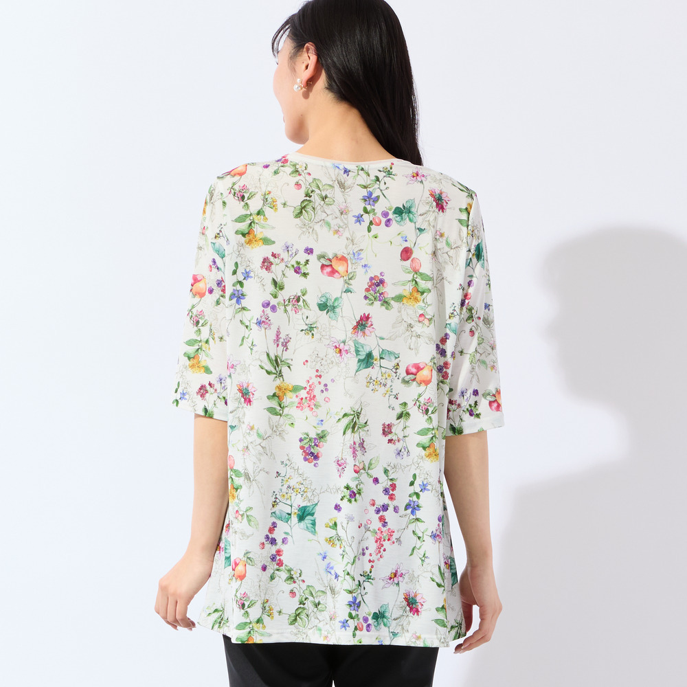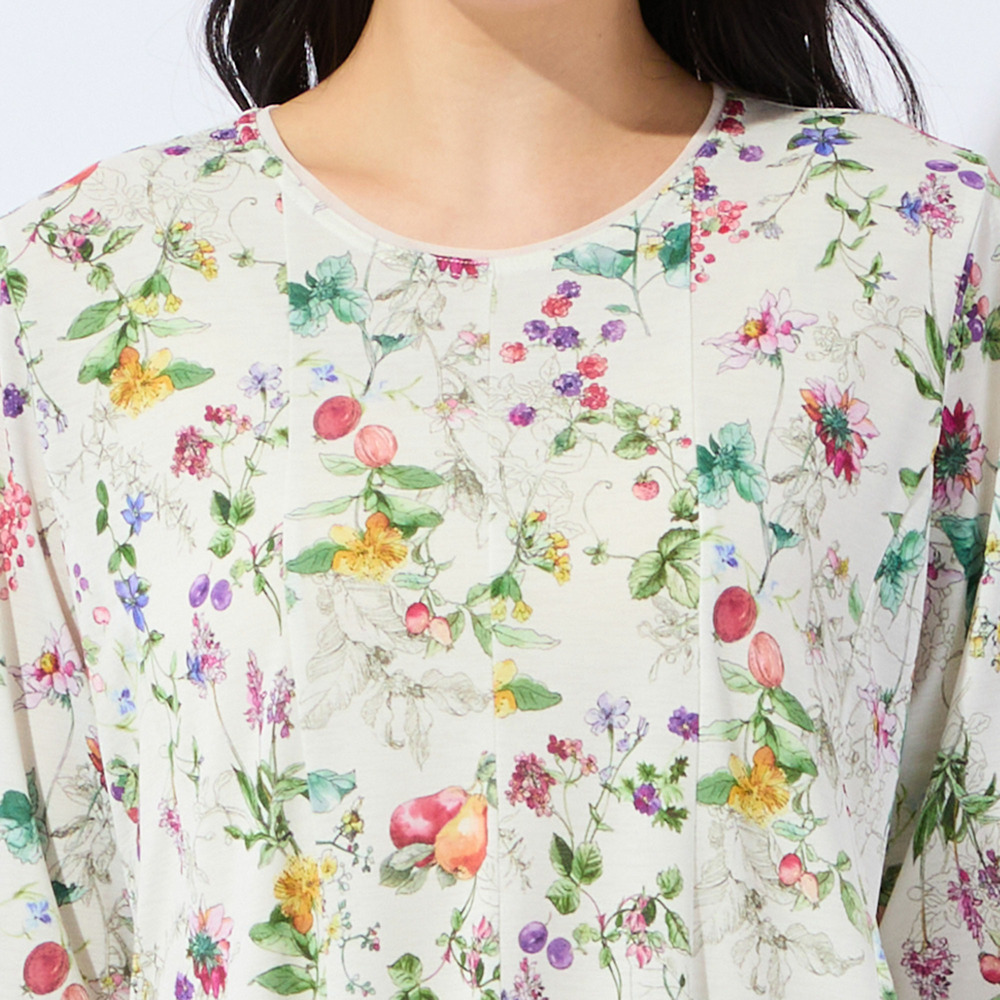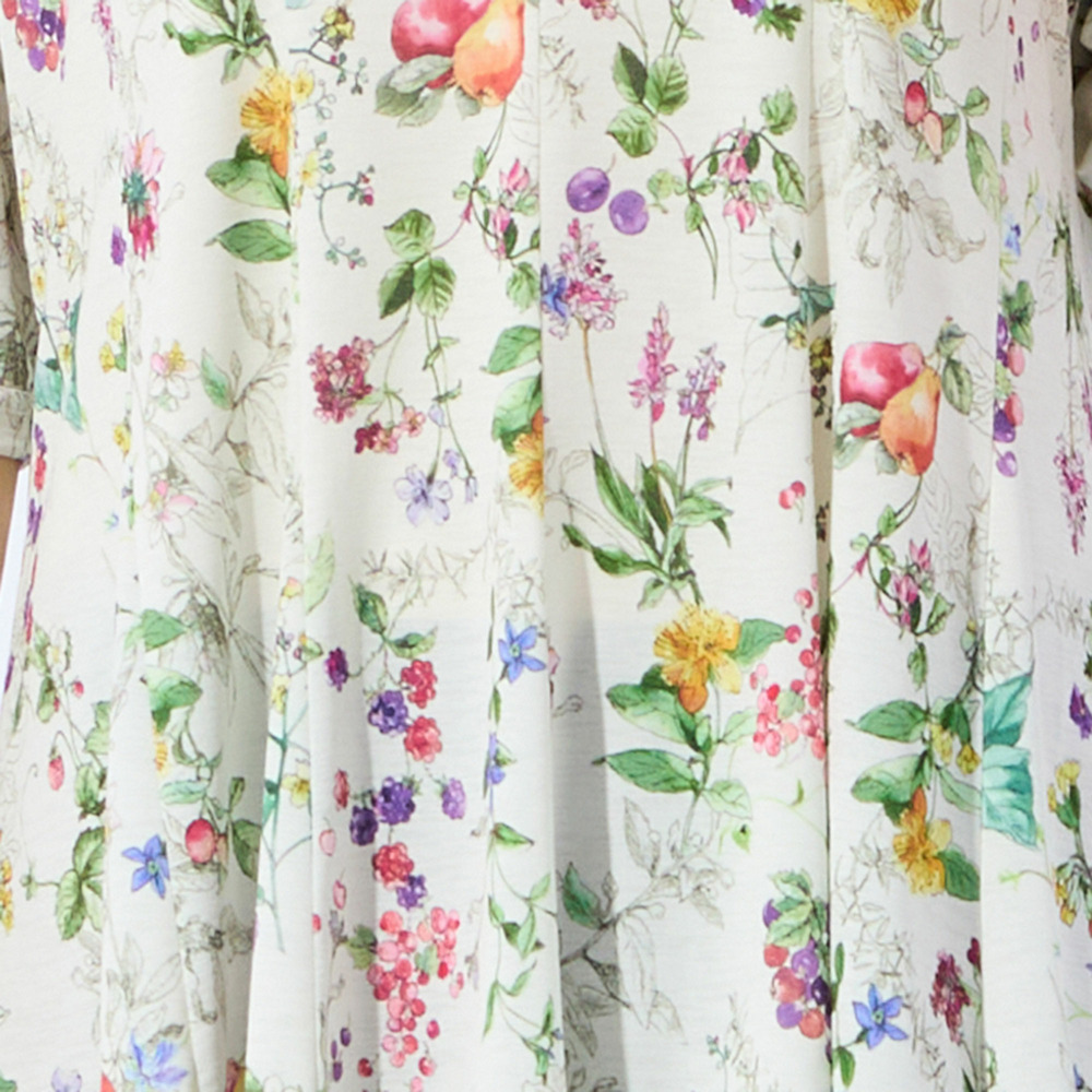 瑞々しく描かれた様々なフルーツがとっても華やか!着映え度抜群で、デイリーから夏のお出かけシーンまで活躍してくれます。