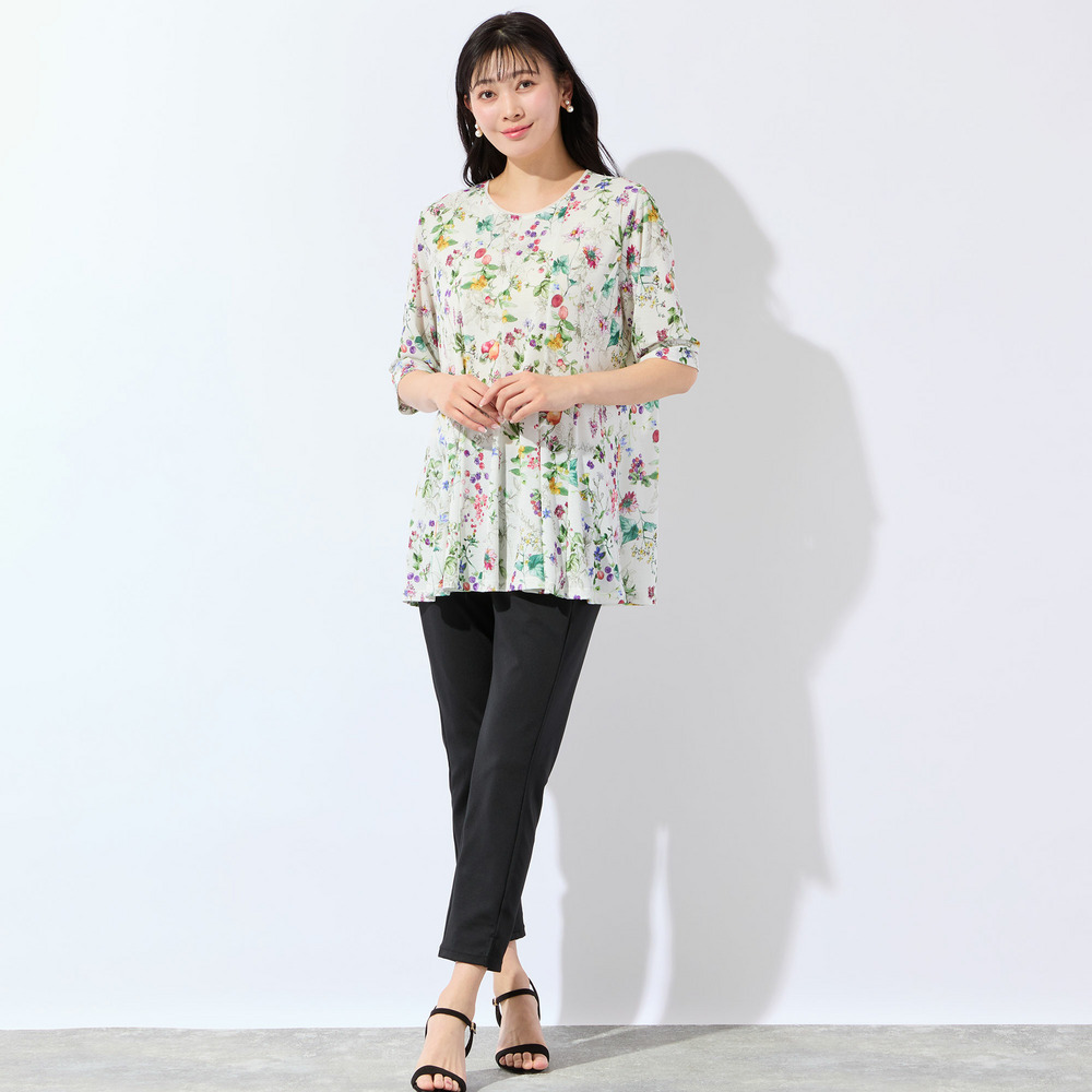 パンツコーデが華やぐ人気デザインのチュニック。