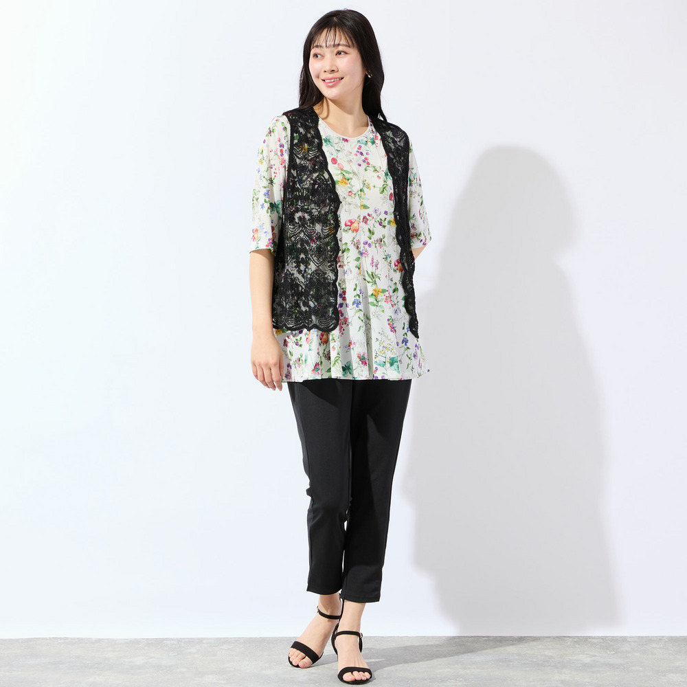 単品でも映えますが、ジレやカーディガンを羽織っても素敵です。