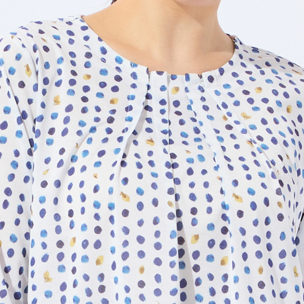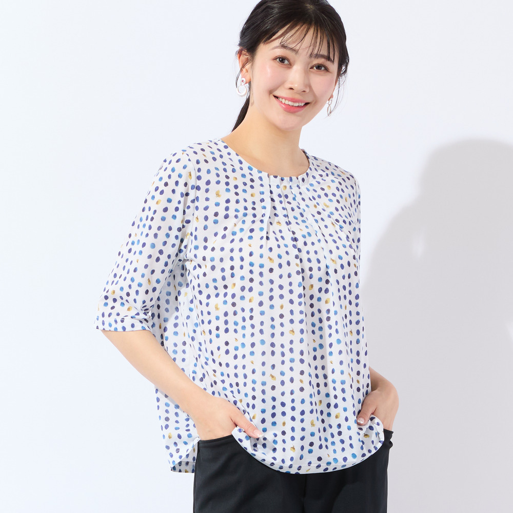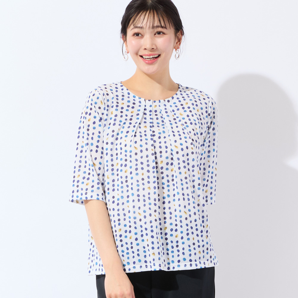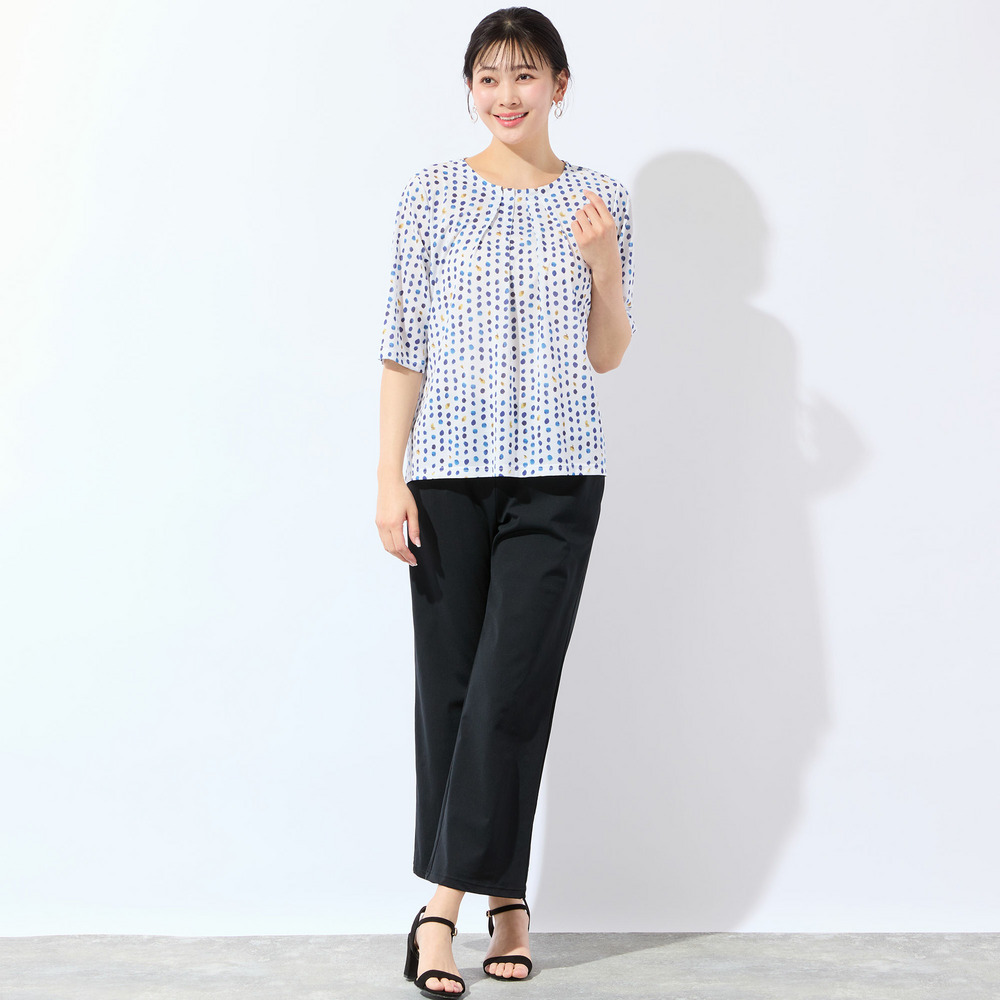 フロントの襟ぐりにタックを入れてアクセントにしました。