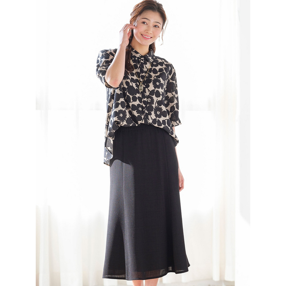 品良く穿けるスカートは、シリーズのブラウスと合わせたり、レーストップスとも相性抜群。