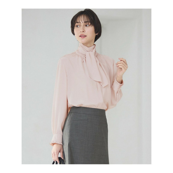 さりげないドット模様がポイントになった、女性らしく華やかなブラウスです。ギャザーをたっぷりとあしらったボリュームスリーブが手元を華奢に美しく魅せ、エレガントな雰囲気を演出します。一枚で主役になる存在感がありながらも、どんなボトムスとも好相性。シンプルなパンツやスカートと合わせるだけで、洗練されたコーディネートが完成します。デイリー使いはもちろんのこと、ビジネスシーン、さらにはお子様の学校行事、七五三、お食事会などのセレモニーシーンまで、幅広いオケージョンで活躍。ジャケットいらずでも華やかな印象を叶え、着る人の品格を引き立ててくれる頼れる一枚です。 カラーは清潔感溢れるホワイト(#001)、顔色を明るく見せる優美な新色のピンク(#012)、爽やかで知的な印象を与えるサックスブルー(#073)、優しい色合いのベージュ(#033)の4色展開です。
