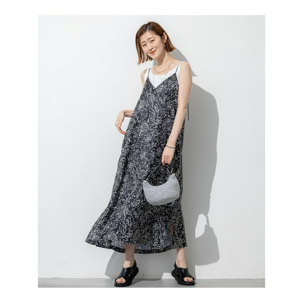【洗える】アンティークフラワープリント キャミソールワンピース