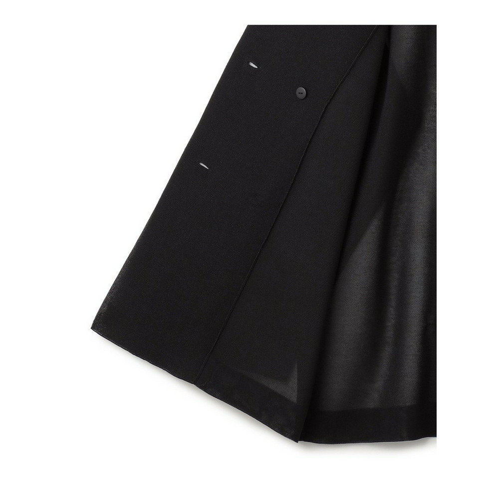 綿ポリエステルを表側に、透明糸を裏側に合わせた天竺編みのダブルボタンのニットジャケット。程よい透け感とハリ感が特徴で、羽織るだけで洗練された印象に。前立て部分は総針編みで、襟元がきれいに返るように仕立てられています。大きすぎない身幅でありながら、前身頃の絶妙な分量感が大人っぽさを演出。冷房対策としてはもちろん、暑い夏を快適に乗り切るアイテムとしても活躍します。シワになりにくく、ご自宅で手洗い可能なイージーケアも嬉しいポイントです。きれいめパンツと合わせてオフィスシーンに、デニムと合わせてカジュアルダウンするなど、幅広いスタイリングをお楽しみいただけます。カラーは印象引き締まるブラック(#005)、抜け感を演出するベージュ(#033)、洗練された印象のネイビー(#075)の3色展開です。