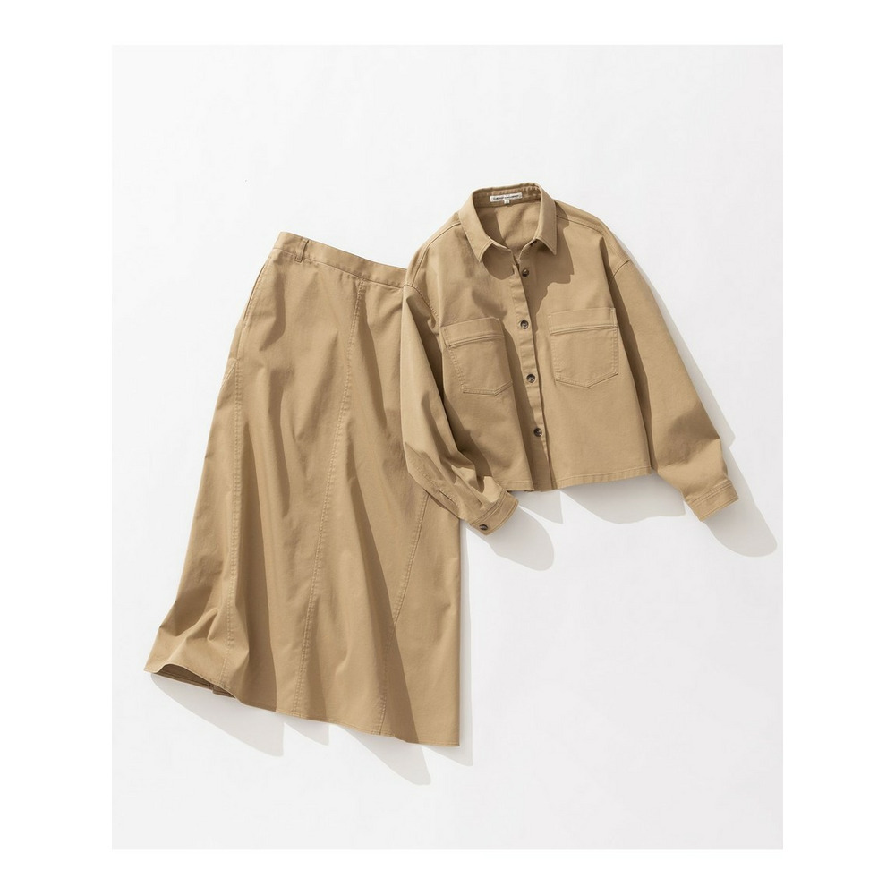 ストレッチギャバ チノ ショート シャツジャケット(品番:BLWOLM0318)ストレッチギャバ チノ パンツ(品番:PRWOGA0214)ストレッチギャバ チノ ワイド パンツ(品番:PRWOLM0318)ストレッチギャバ チノ タックフレアスカート(品番:SKWOLM0318)