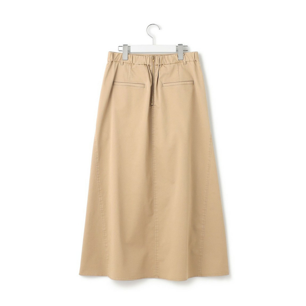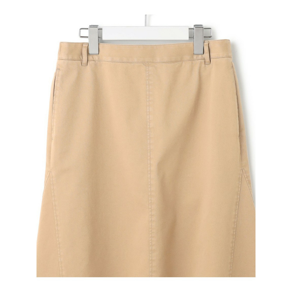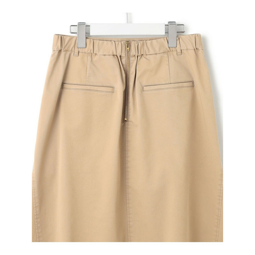 脇にタックを入れたチノスカート。タックにより裾だけが広がるため、腰回りをスッキリと見せてくれます。またデザインとしてもタックがアクセントになるため、シンプルなTシャツと合わせても素敵に着ていただけます。ウエストの後ろにファスナーがついているため、着脱が楽なのもうれしいポイント。カラーは、チノ素材らしいベージュ(#033)と落ち着いたカーキ(#054)の2色展開です。