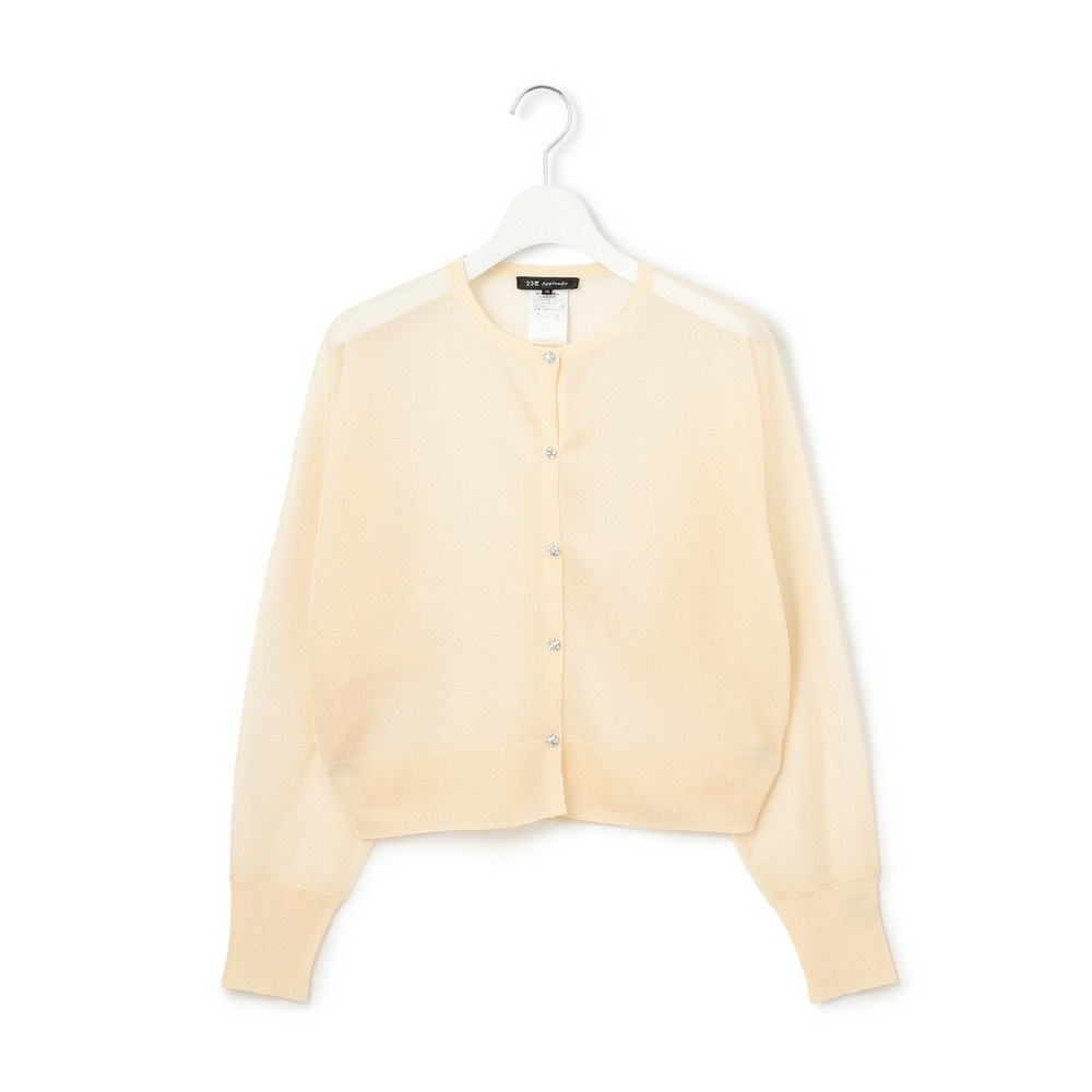 デザイン性のある袖のワンピースやインナーにも合わせやすいドルマン型ショートカーディガン。 ビジューボタンをあしらいフロントの印象をさりげなく華やかに彩ります。 手首までの長さのある袖丈ですが、素材の繊細な質感と長めの袖口リブ仕様にすることで、華奢な印象になるように仕上げています。カラーは品よく煌めきを加えた3色展開。肌なじみよくエレガントなゴールド(#090)、品よく爽やかな印象のシルバー(#091)、シックな雰囲気を引き立てるブラック(#005)です。