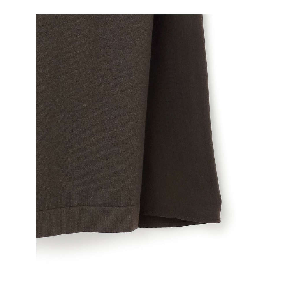 フロントはシンプルですっきりした印象、後ろ身頃に別布を使用したニットワンピース。少し立ち上がりのある襟元で、顔まわりをすっきりと見せ、アクセサリーも合わせやすく仕上げています。目の詰まった編地がボディーラインを拾わずきれいなシルエットを保ちます。後ろ身頃はヨーク切り替えで高い位置からギャザーを入れ分量感をもたせています。軽量な生地なので重くなく、動きに合わせて程よく広がるデザインです。カラーは、洒落感のあるブラウン(#054)、品の良さを演出するネイビー(#075)、シックな雰囲気のブラック(#005)の3色展開です。