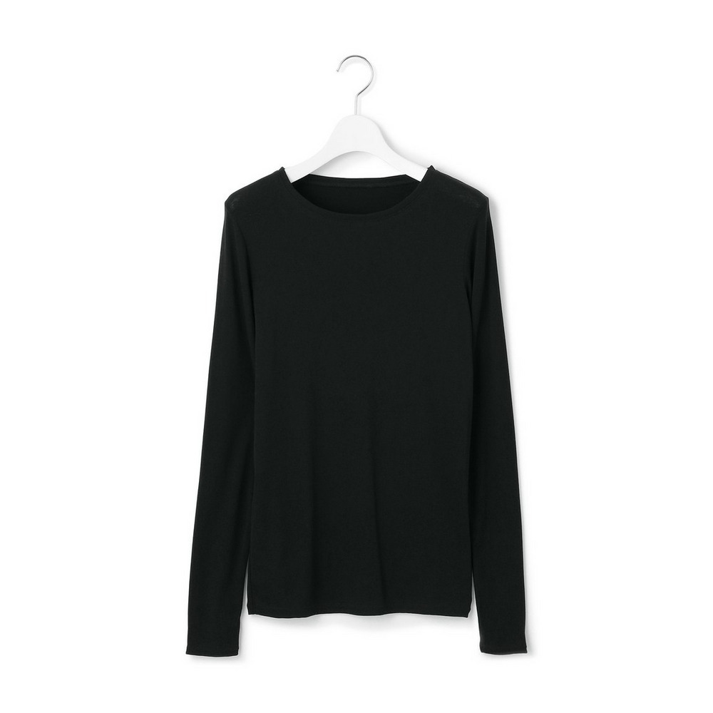 ■素材撚りの強い細番手の強撚糸を使用し、毛羽立ちが少なくサラッとした肌触りのフライス編みに仕上げました。程よいシアー感がありながらも、縦横の伸度バランスにこだわり、伸縮性に富んだ快適な着心地が特徴です。体の動きに合わせてしなやかにフィットし、ストレスフリーな着心地を叶えます。