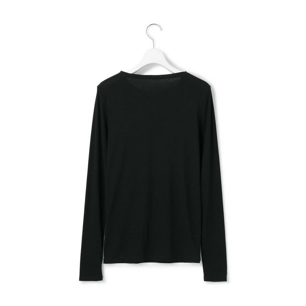シンプルなクルーネックのプルオーバーカットソー。レイヤードスタイルに最適なコンパクトなサイズ感が魅力です。伸度のあるフライス編み地なので、柔らかくストレスフリーな着心地を実現しました。一枚でさらりと着こなすのはもちろん、ジャケットやカーディガンのインナーとしても活躍し、幅広いコーディネートに対応します。カジュアルからきれいめまで、どんなスタイルにも馴染む万能アイテムです。カラーは、明るい印象のホワイト(#001)、印象引き締まるブラック(#005)の2色展開です。