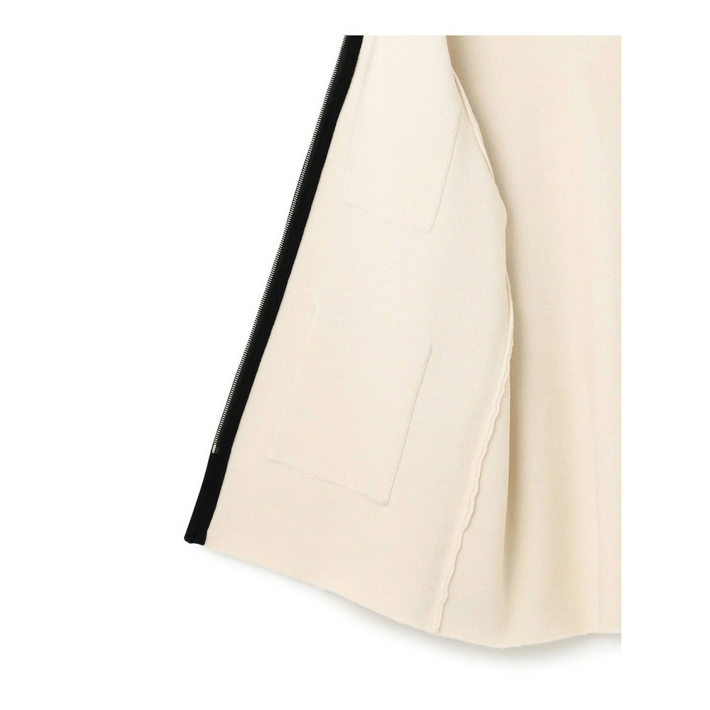 接結編み(2枚の生地を一枚の布のように編み合わせる編み方)で仕立てたクルーネックのニットアウター。前立て、襟、袖口に施された配色がデザインのポイント。ゴールドカラーの金属ファスナーがアクセントになり、上品さを引き立てます。秋口の早い時期から羽織りとして活躍し、Tシャツなどと合わせて着てもサマになります。また、コートを着る時期にはインナーとしても着やすいサイズ感なので、ロングシーズンお使いいただけます。様々なシーンで活躍する、ワードローブに加えるべき一着です。カラーはやわらかな印象のアイボリー×ブラック(#102)、品の良いブラック×ベージュ(#105)の2色展開です。