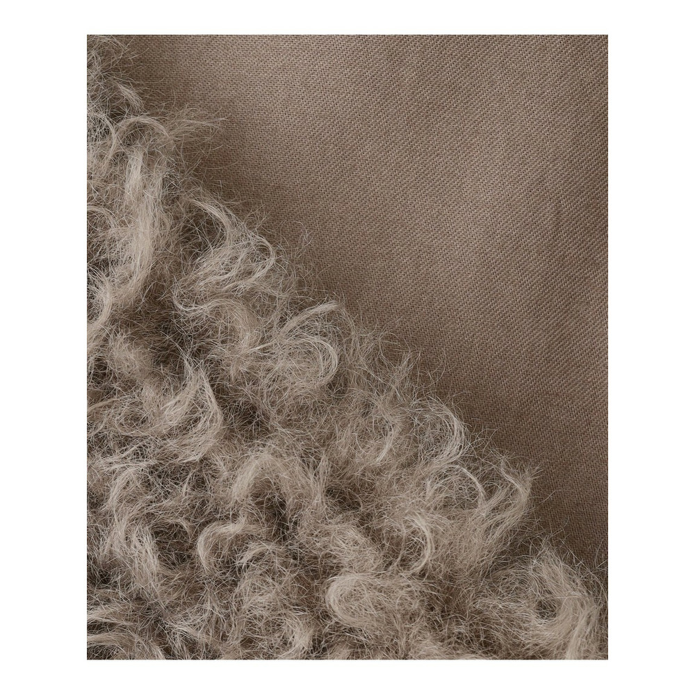 ■素材フランスのティサベル社のフェイクファー(フランス企画、中国生産)素材。ポリエステルの中空捲縮フィラメント糸を使用し柔らかさと膨らみを出し、ランダムにカールした長毛を高密度ボア編機で編む事により、ボリューミーで変化のある表情に。仕上げにタンブリング加工で繊維を揉みほぐすことで、更に膨らみと柔らかさをプラスしています。※捲縮糸…熱や加工で縮れさせた糸のこと。