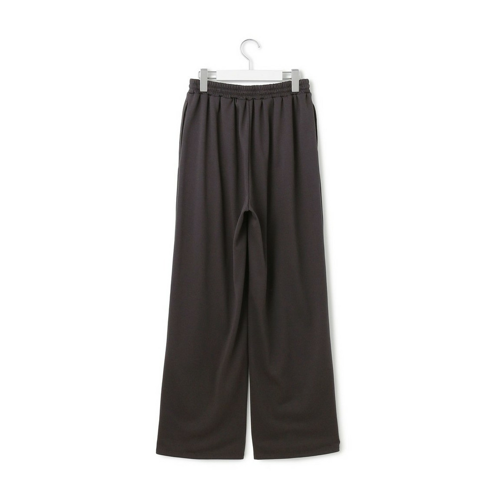 ウエストゴムとドローストリングのイージーなワイドパンツです。やわらかな素材が美しい落ち感を演出し、リラックスした着心地とすっきりとしたシルエットを両立させています。センタープレスのようなステッチがデザインポイントです。カラーは、明るく柔らかい印象のベージュ(#033)、落ち着いた印象のグレー(#004)の2色展開です。