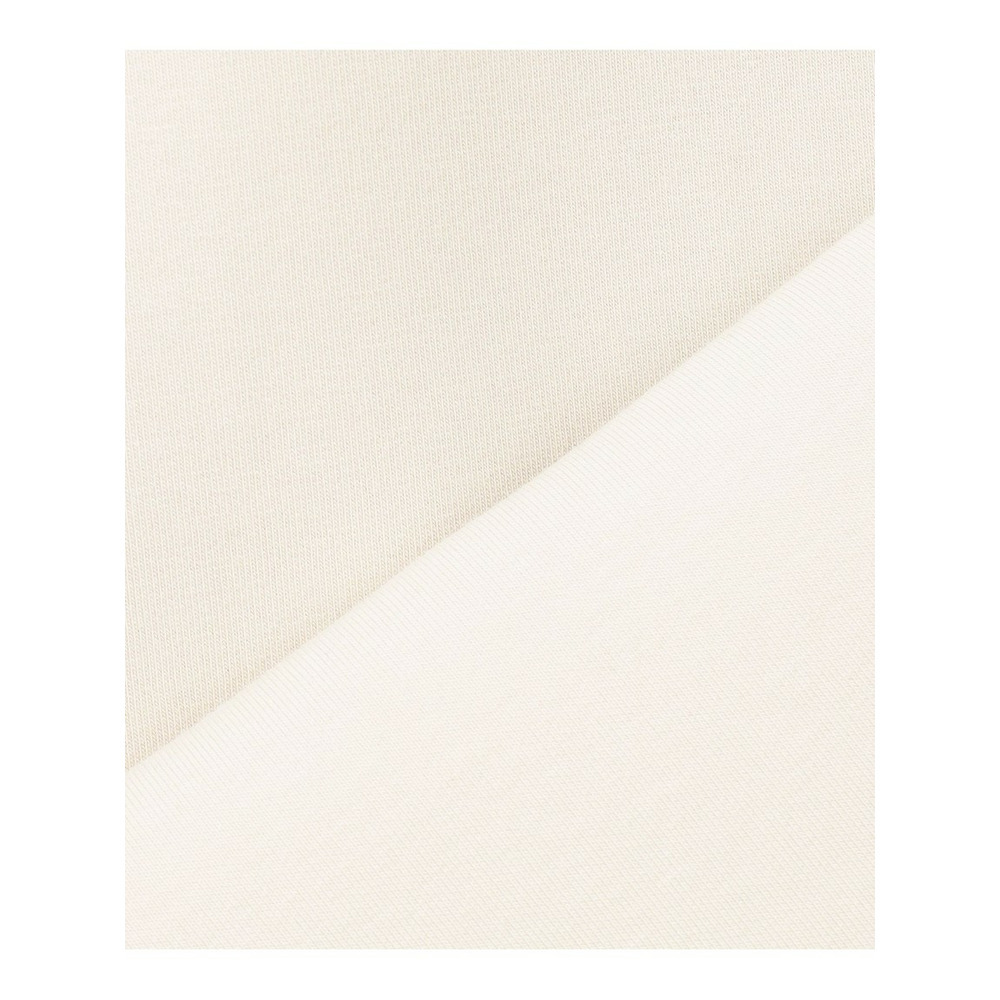 空気を含んだような軽やかさと、ふっくらとした弾力性が特徴のダンボール素材を使用しています。両面がコットン素材のため、肌触りが良く、ナチュラルな風合いながらもクリアで上品な表情が魅力です。カジュアルになりすぎない上質な素材感は、様々なシーンで活躍し、着るだけでこなれた印象を与えます。