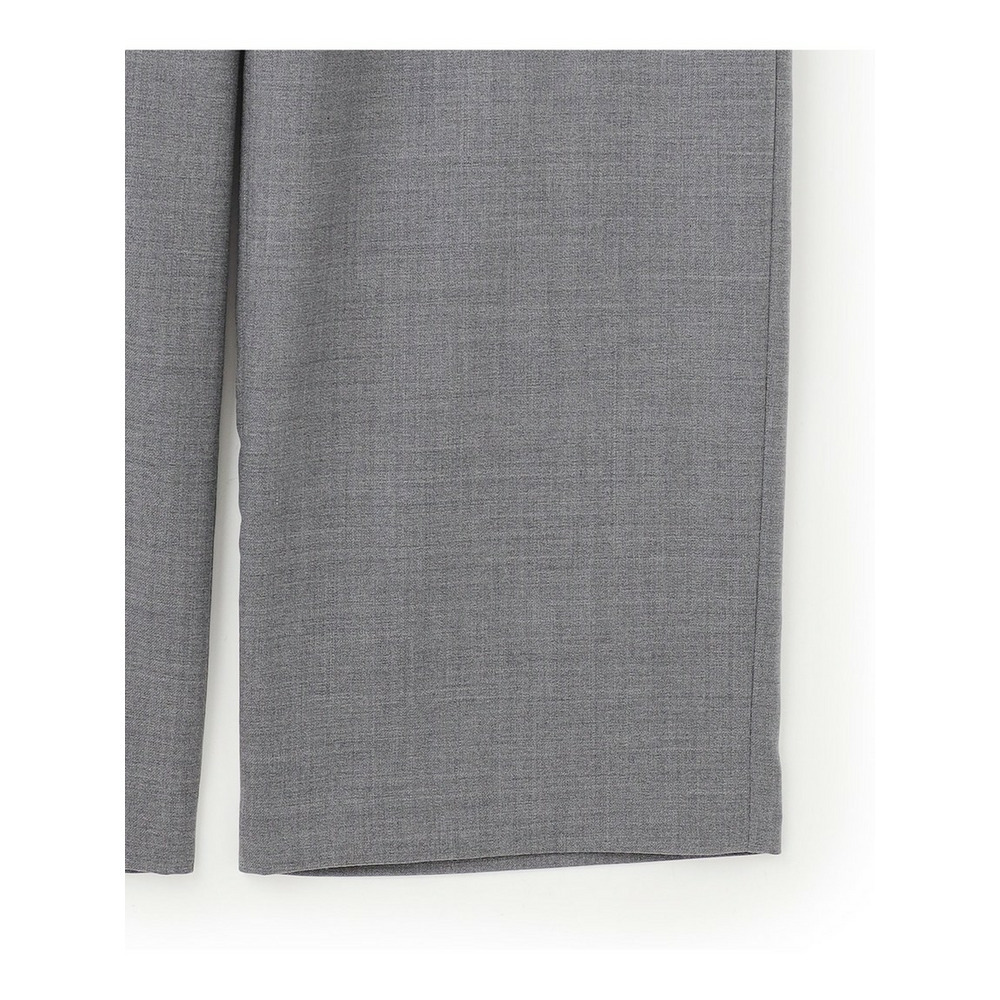 メリノウールの細い糸とポリエステルを使用したサキソニー素材。ウールとポリエステルをバランスよく配合することにより、シワになりにくい素材に仕上げています。ポリエステルには、ストレッチ性のあるスパン繊維を使用することにより、ウールライクな風合いとストレッチ性を出しています。また、毛玉ができにくくなるようにアンチピリングポリエステルの糸を使用することで、風合いもより柔らかくなっています。ブラック(#005)のカラーのみ、従来よりもほこりや毛が付きづらくなるように、導電性カーボンを付着させた糸を混紡しています。