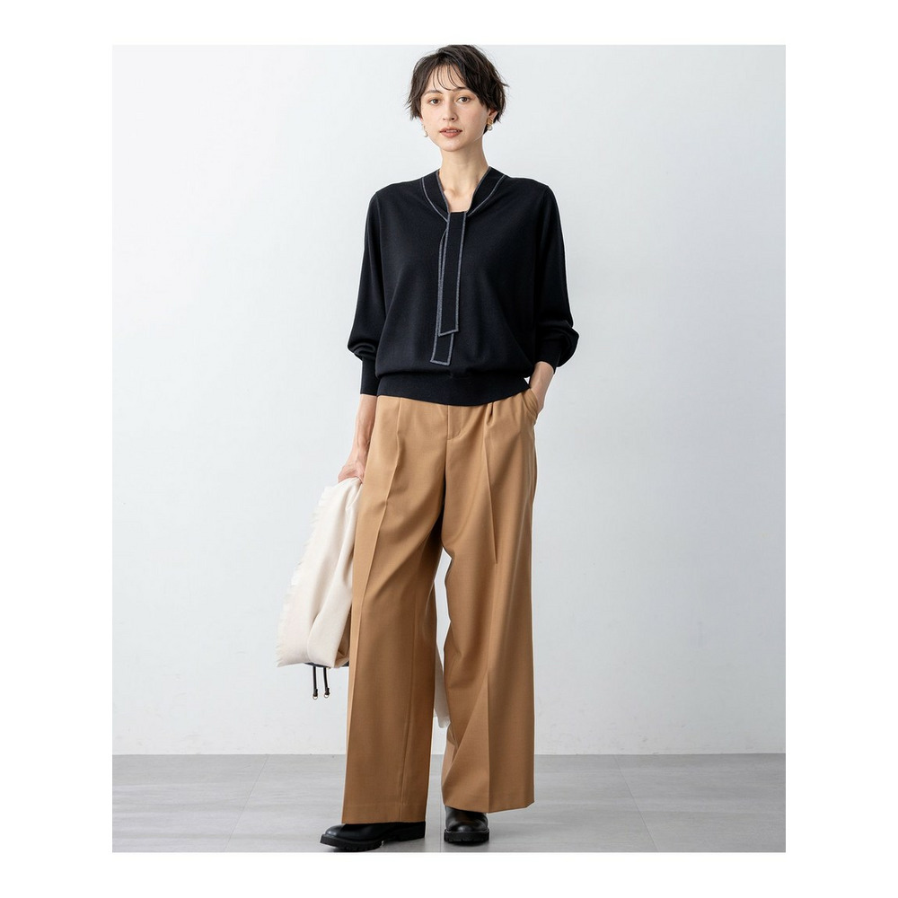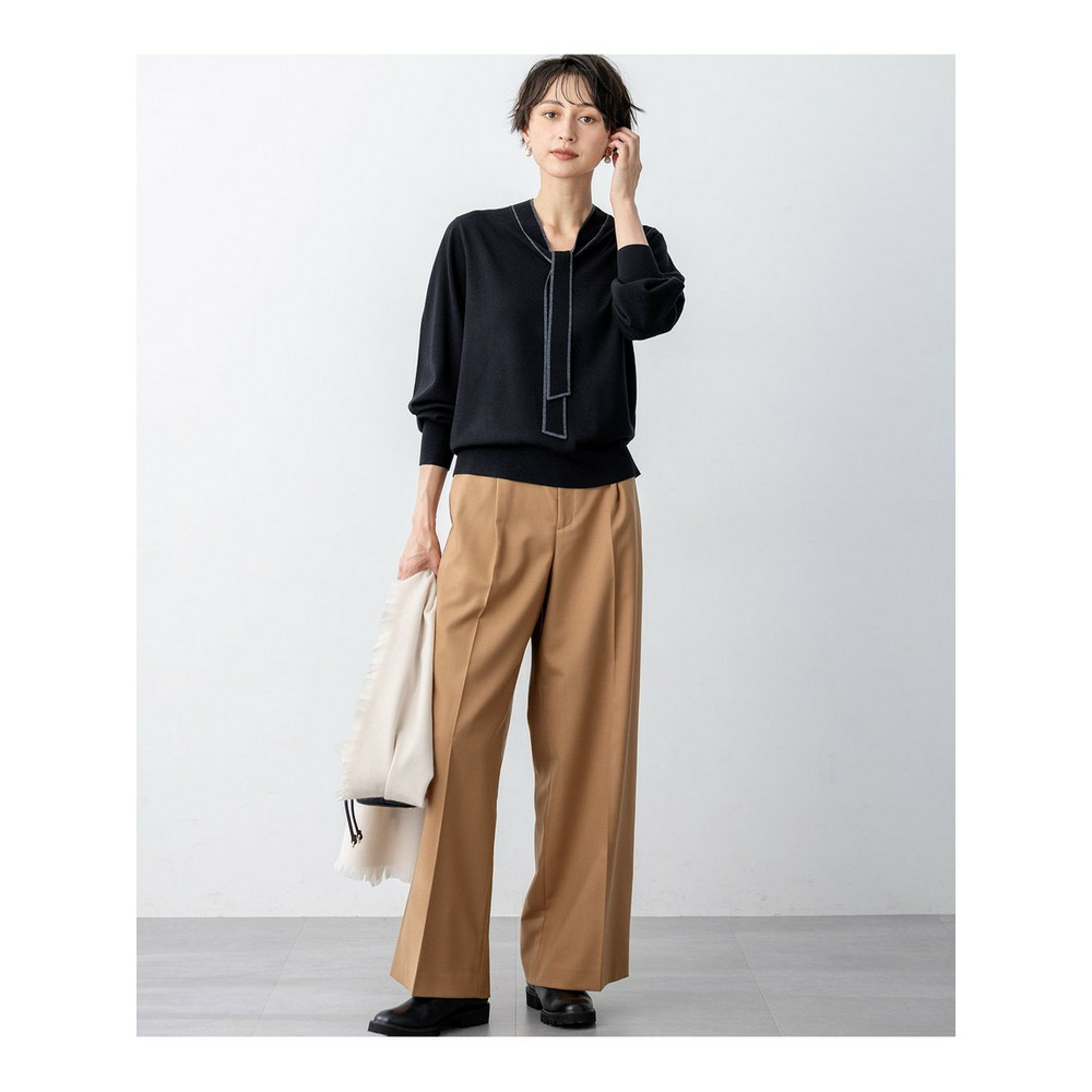 【CanCam11月号掲載/洗える】ナチュラルストレッチサキソニー タック ワイド パンツ