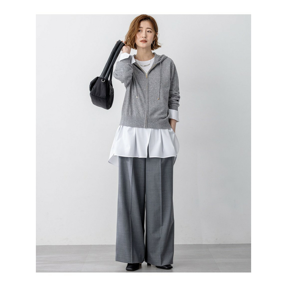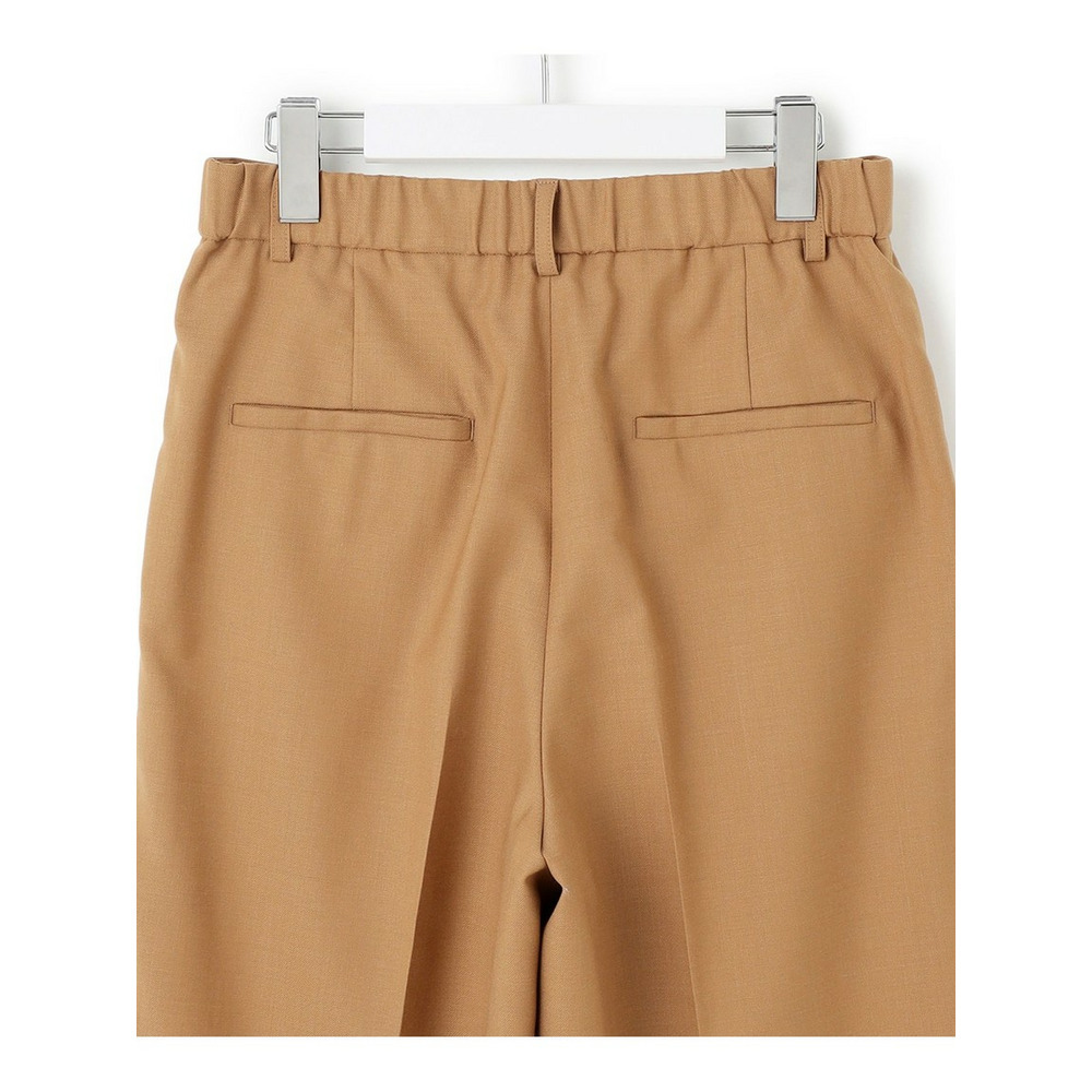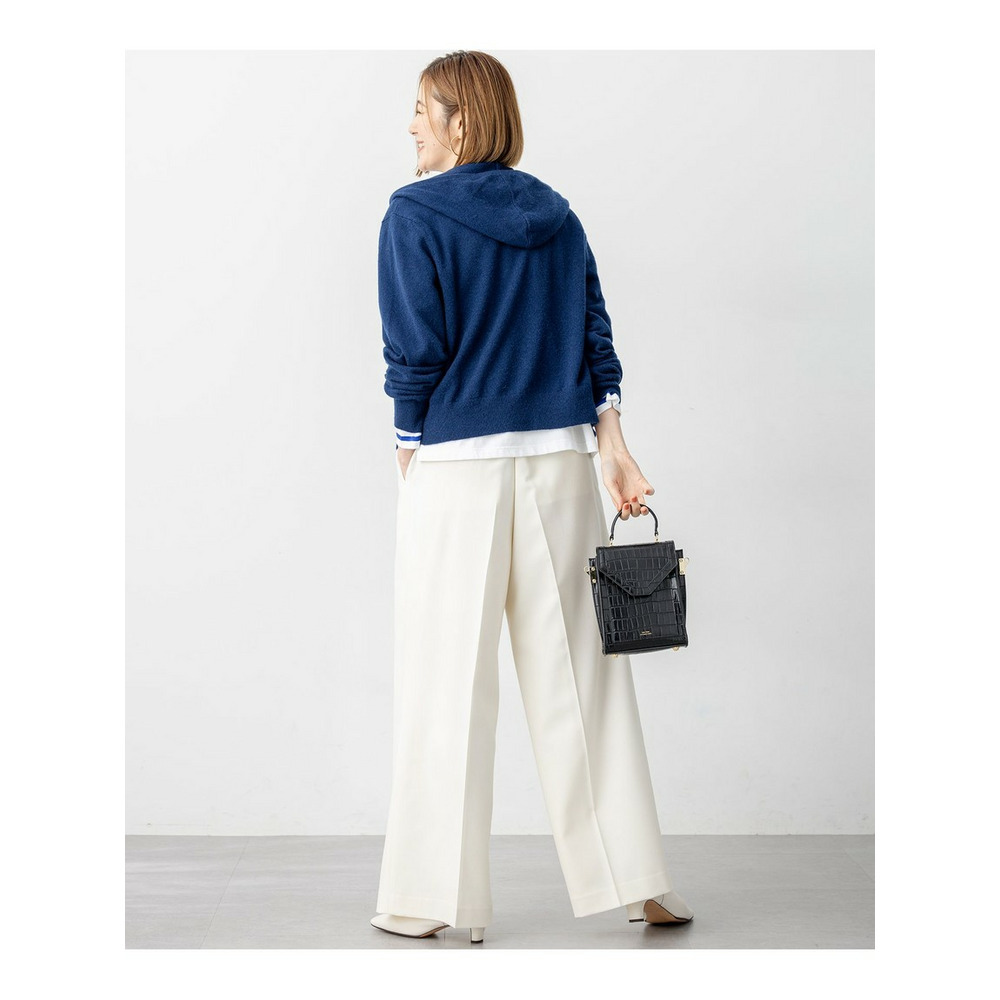 高級感のある素材を活かしたシンプルなワイドパンツ。合わせるトップスを選ばず着回しを楽しんでいただけます。ウエスト部分のフロントは、すっきりと見えるようホックでとめるデザインに。後ろはゴム仕様にすることで穿きやすい1枚になっています。少しワイドめなシルエットで、シンプルながらもトレンド感のある印象です。カラーは、こなれた印象のグレー(#004)と、ON/OFF着られるブラック(#005)、明るくスタイリングのポイントになるホワイト(#001)、こっくりとしたキャメル(#034)の4色展開です。