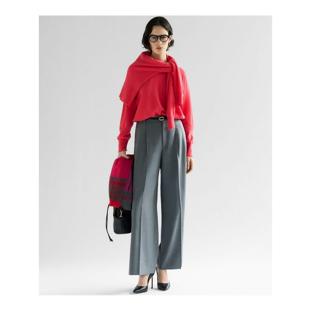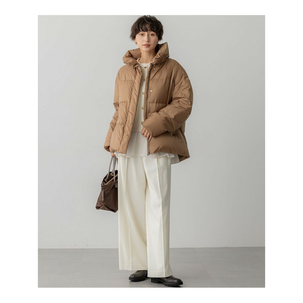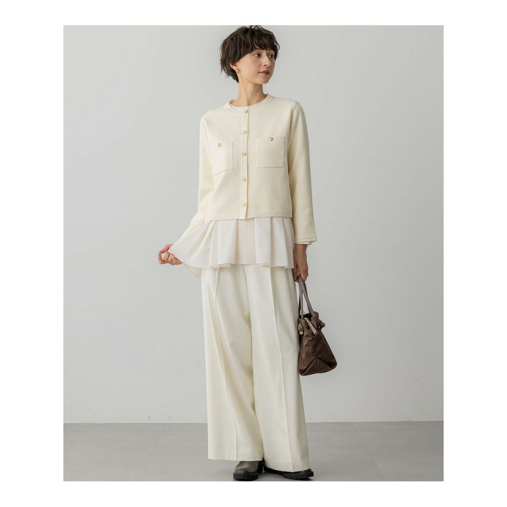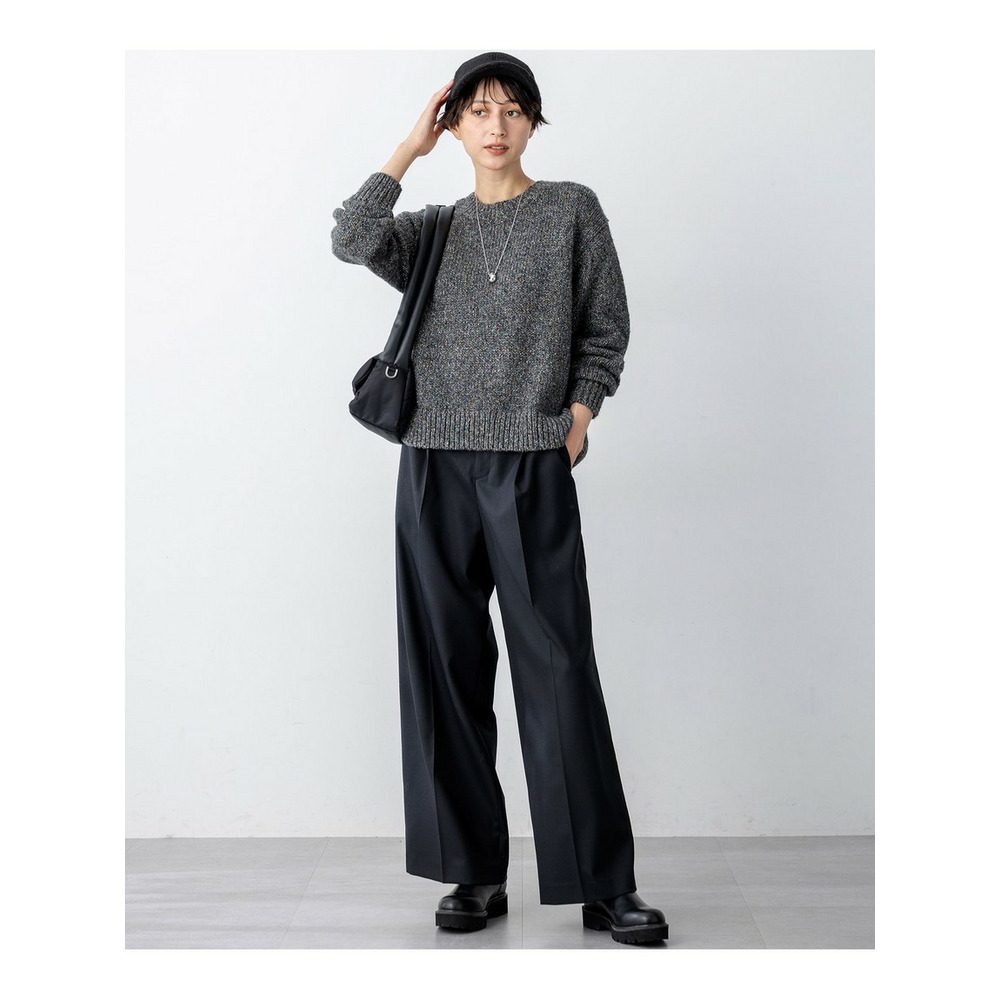 高級感のある素材を活かしたシンプルなワイドパンツ。合わせるトップスを選ばず着回しを楽しんでいただけます。ウエスト部分のフロントは、すっきりと見えるようホックでとめるデザインに。後ろはゴム仕様にすることで穿きやすい1枚になっています。少しワイドめなシルエットで、シンプルながらもトレンド感のある印象です。カラーは、こなれた印象のグレー(#004)と、ON/OFF着られるブラック(#005)、明るくスタイリングのポイントになるホワイト(#001)、こっくりとしたキャメル(#034)の4色展開です。