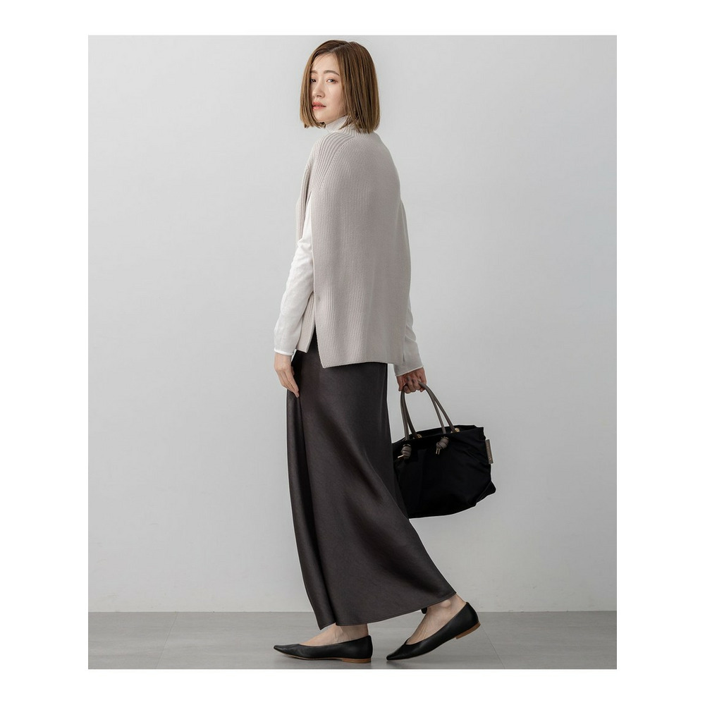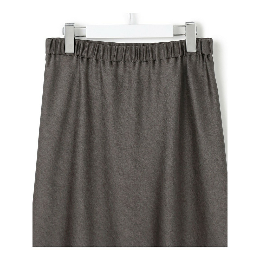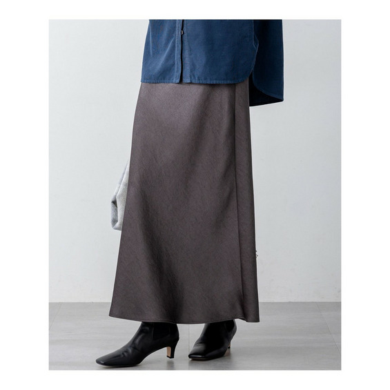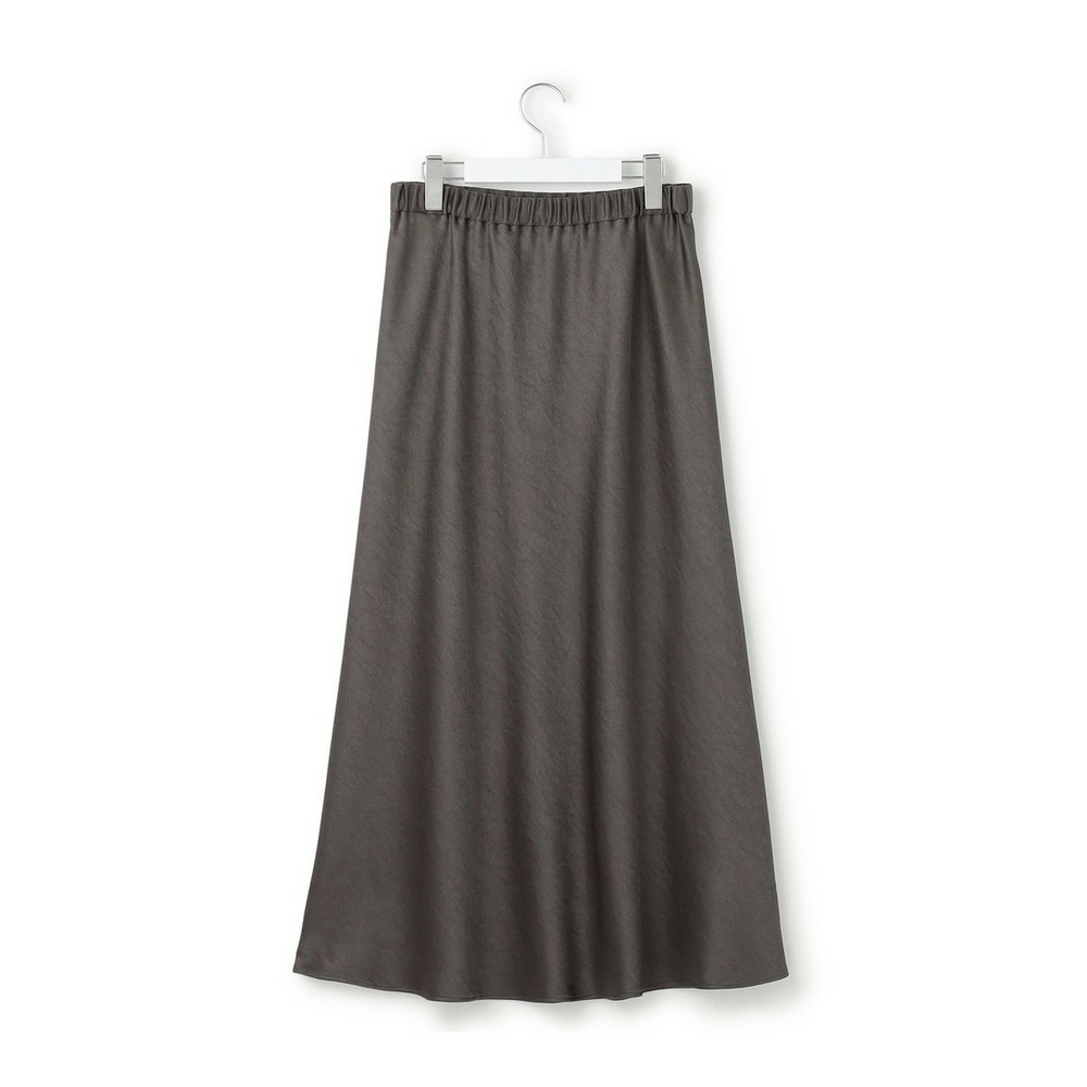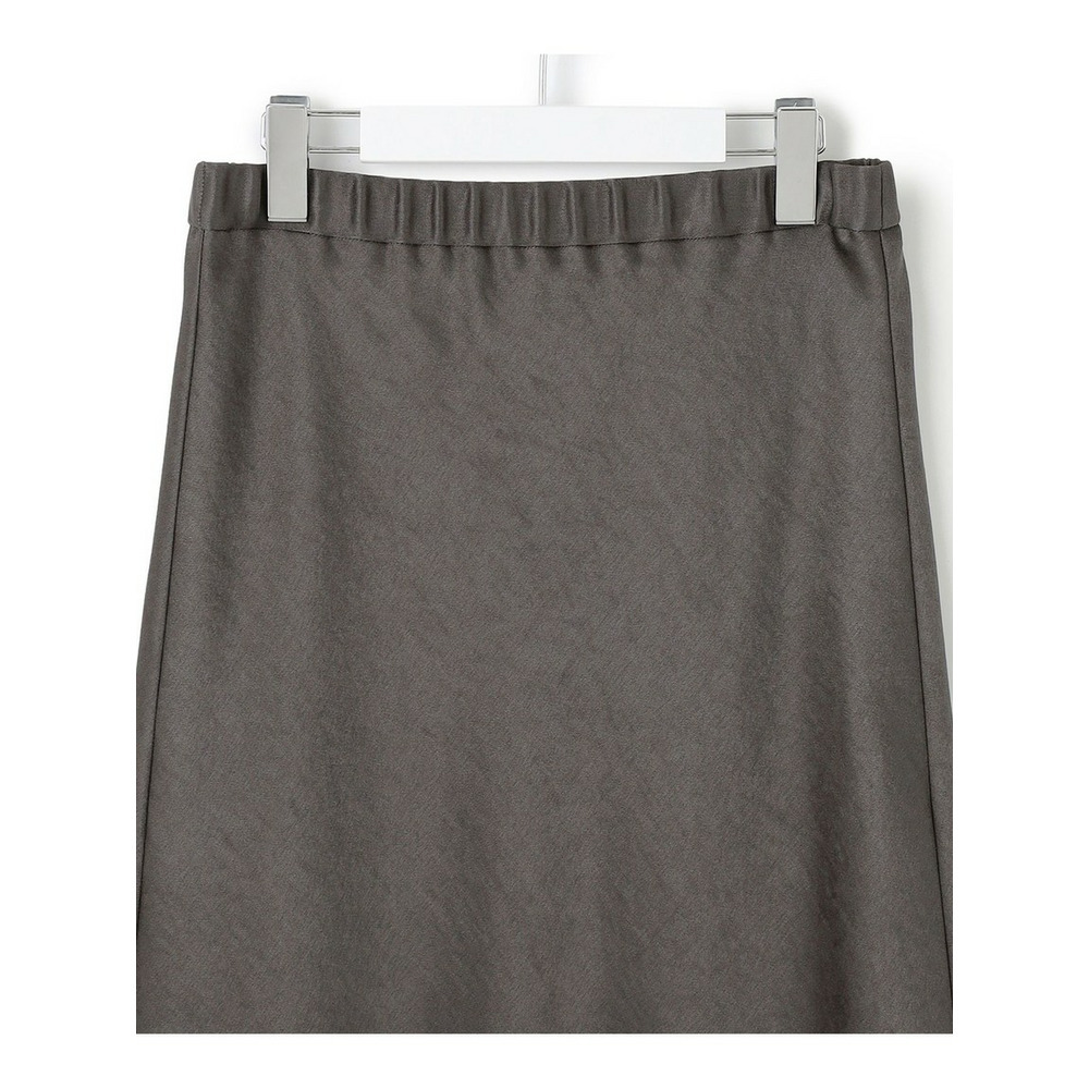 落ち感のあるナロースカート。程よい肉感で体に張り付かず、女性らしいシルエットを作り出してくれます。ウエスト部分はオールゴムで着脱しやすいのも嬉しいポイント。前側のゴムはスッキリと見えるように作っており、トップスをインしてもごわつかないように仕上げています。光沢のあるサテンの質感は、どんなトップスに合わせてもこなれた印象に。オンオフ問わず着用していただけます。カラーは、こなれた印象のグレー(#004)と、柔らかなベージュ(#033)の2色展開です。