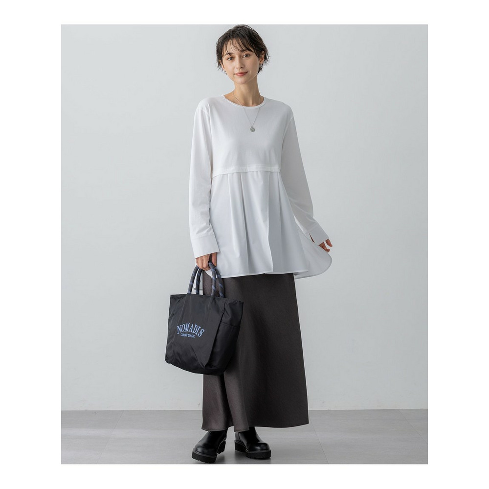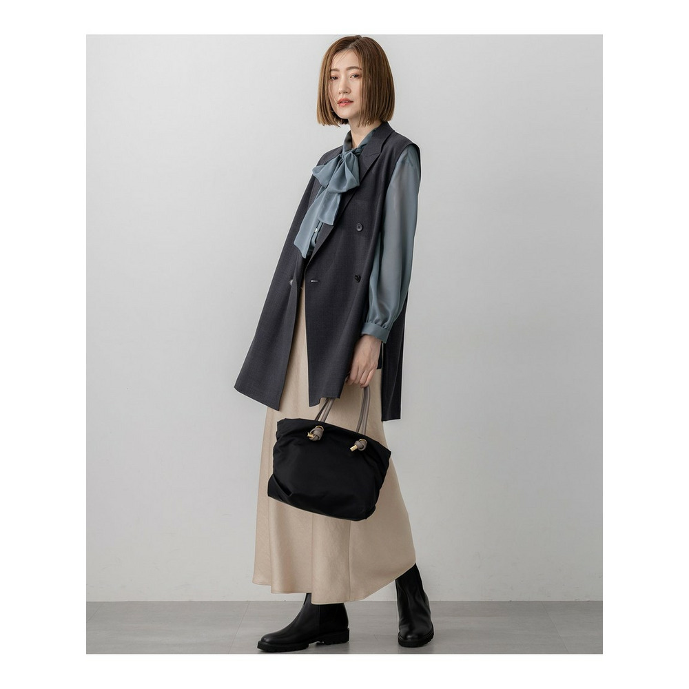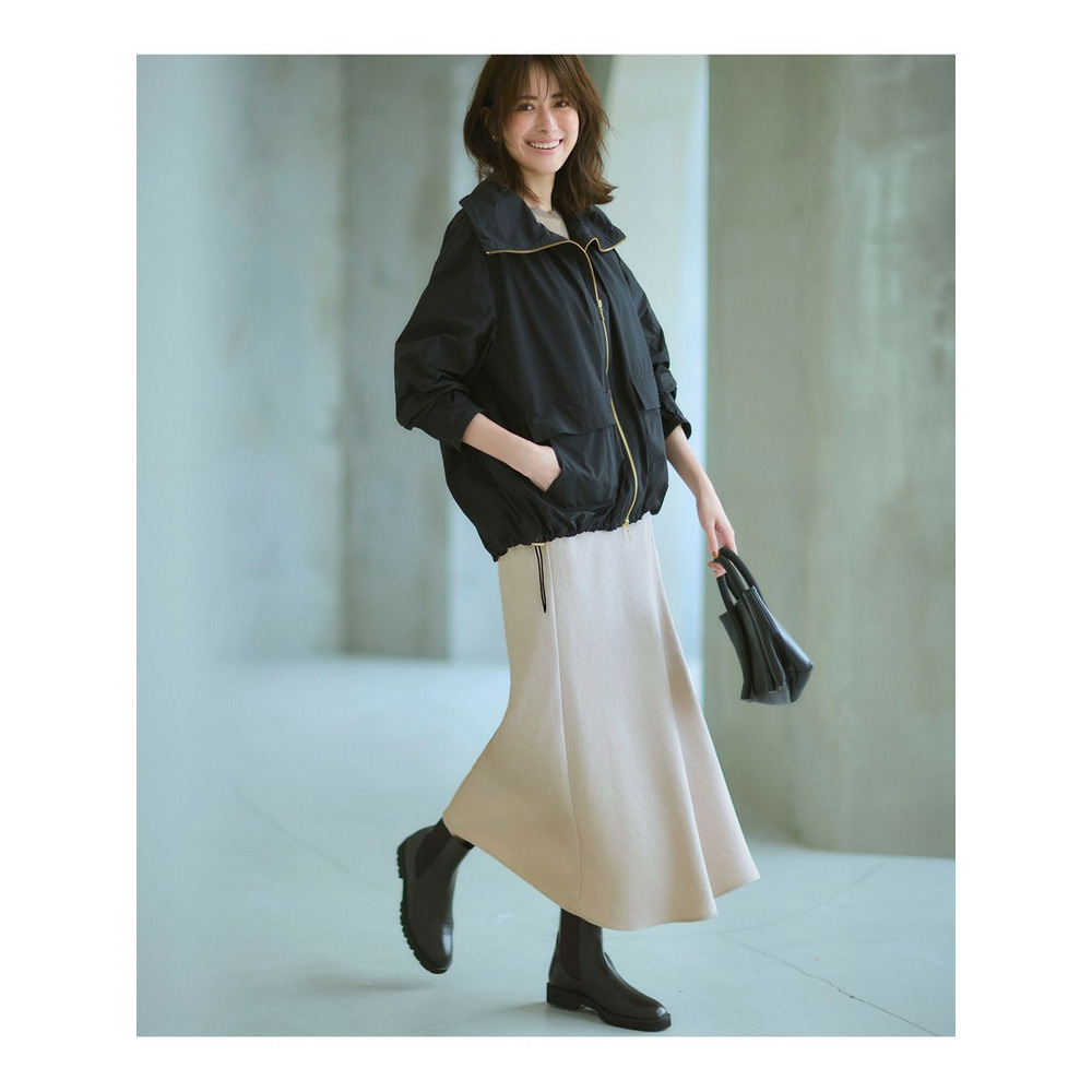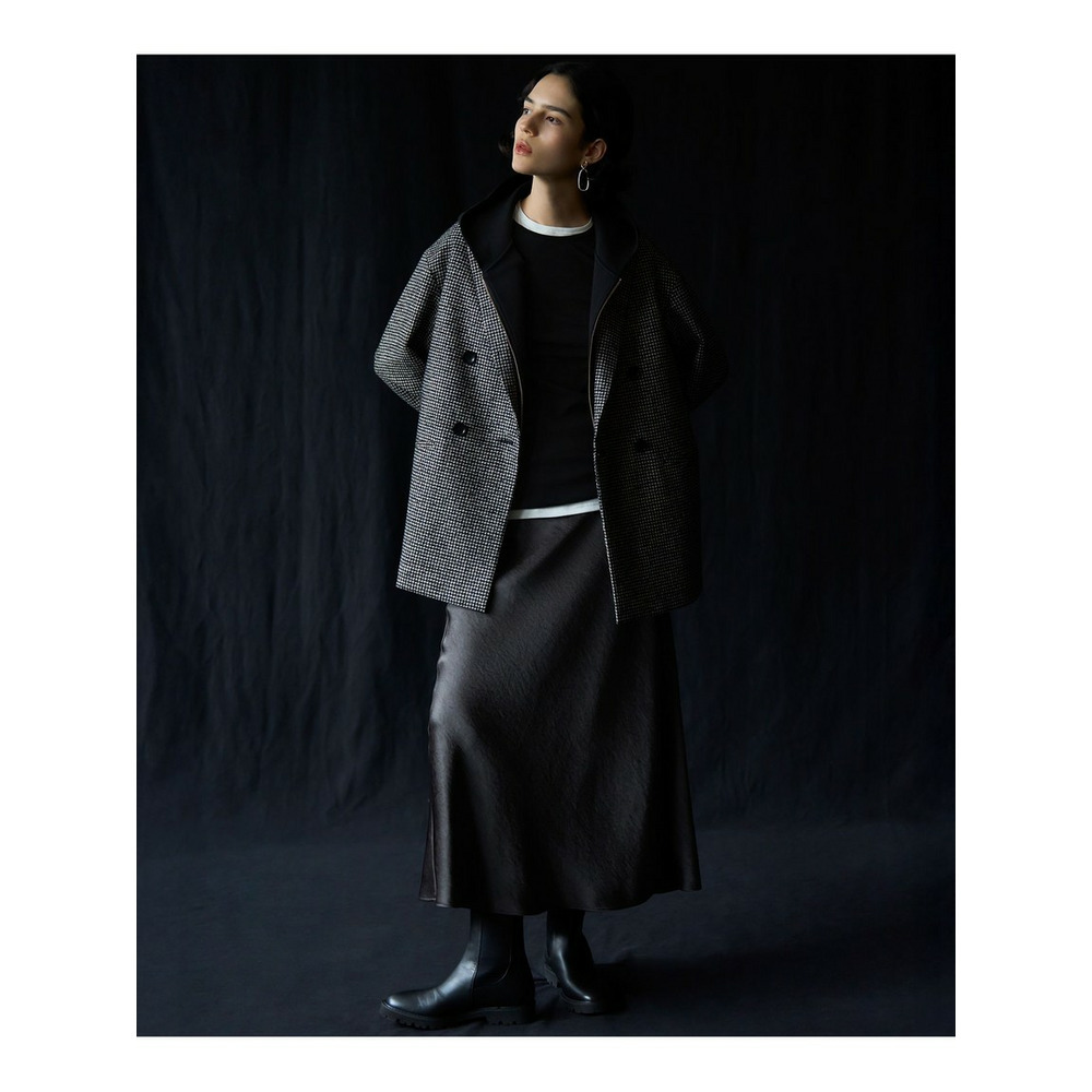落ち感のあるナロースカート。程よい肉感で体に張り付かず、女性らしいシルエットを作り出してくれます。ウエスト部分はオールゴムで着脱しやすいのも嬉しいポイント。前側のゴムはスッキリと見えるように作っており、トップスをインしてもごわつかないように仕上げています。光沢のあるサテンの質感は、どんなトップスに合わせてもこなれた印象に。オンオフ問わず着用していただけます。カラーは、こなれた印象のグレー(#004)と、柔らかなベージュ(#033)の2色展開です。