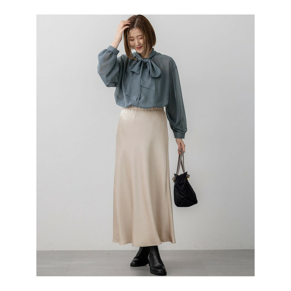 美しい艶感で洗練された印象をプラスするサテンスカート