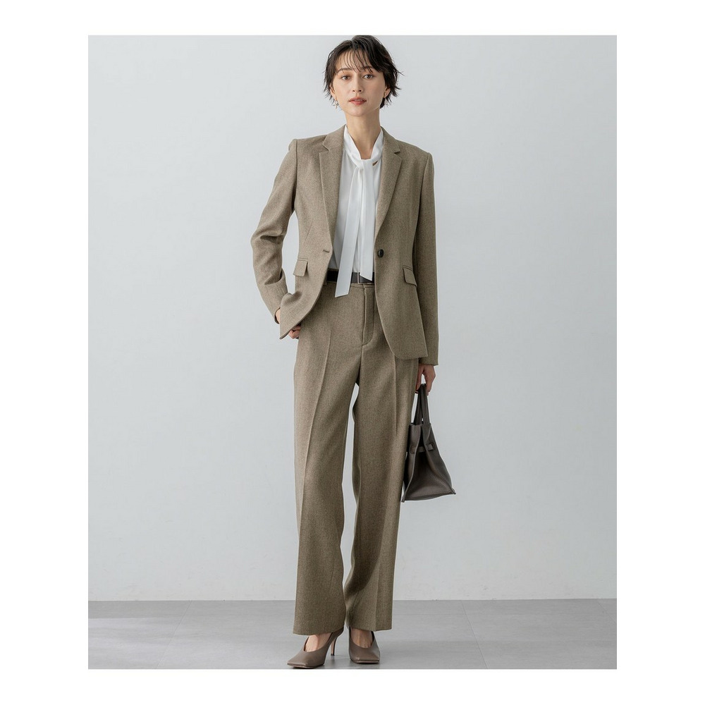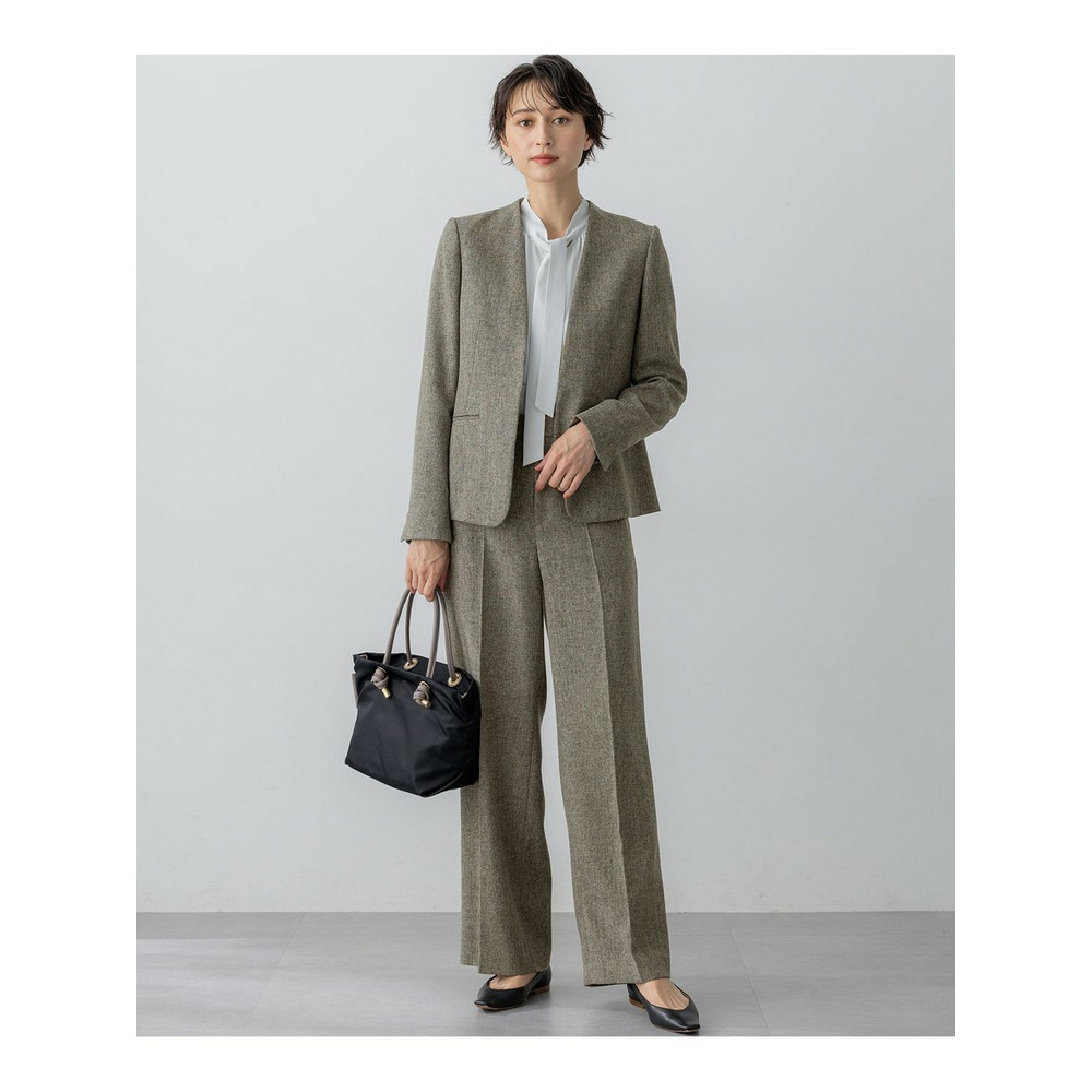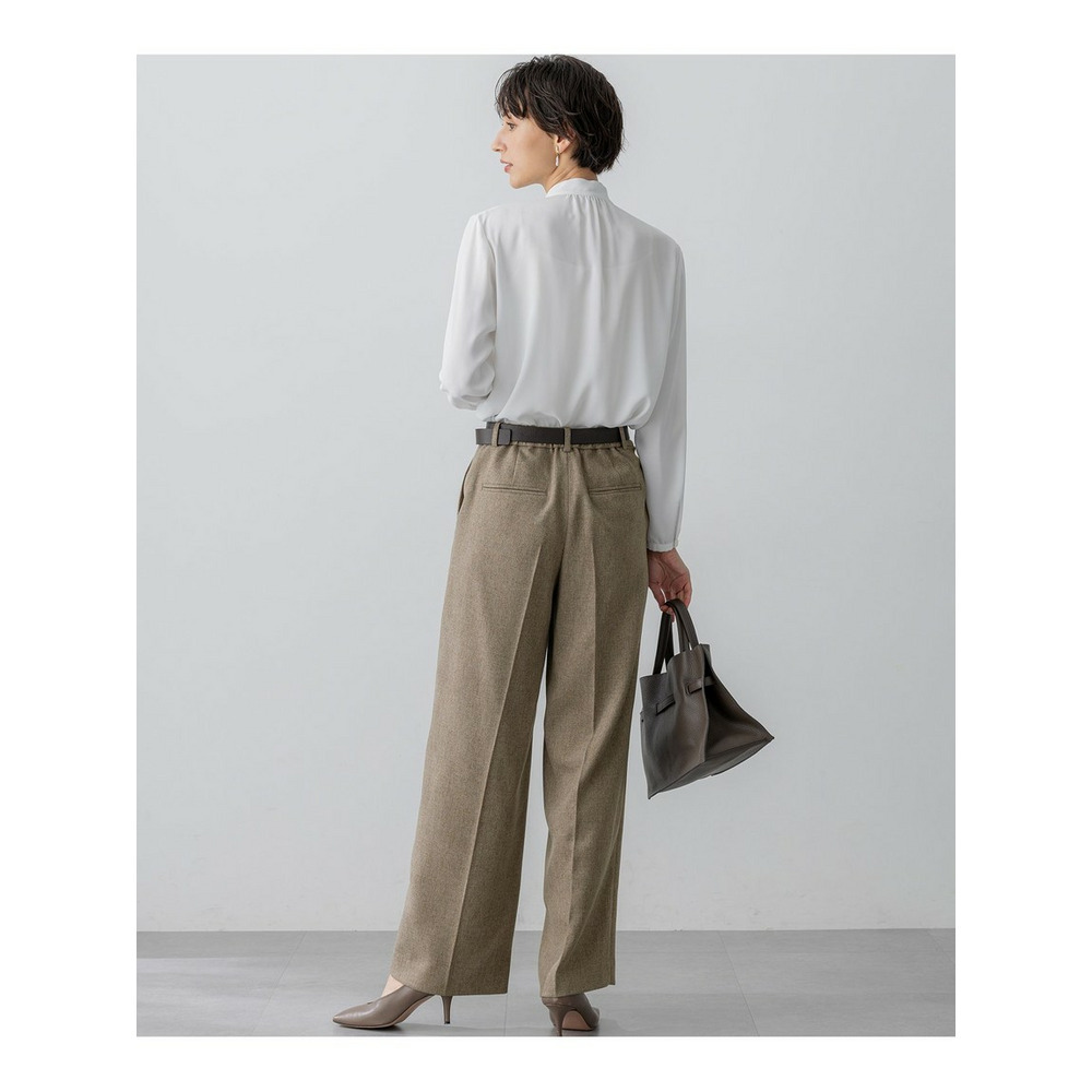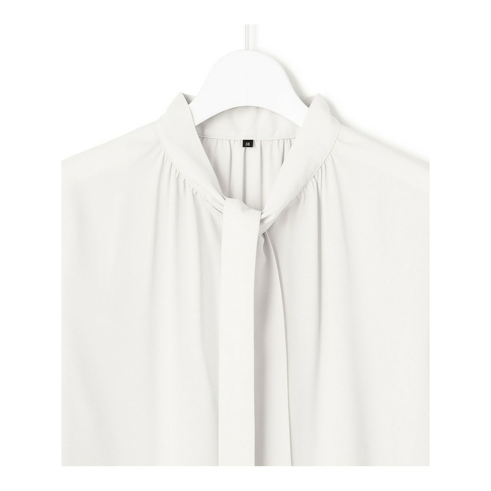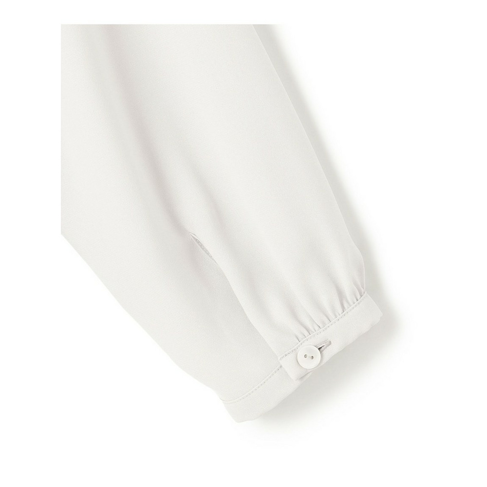 上品な細めのボウタイがポイントのブラウスです。1枚着としてはもちろん、スーツのインナーとしても活躍します。スーツのインナーとしてご着用いただいた際、ボウタイをさらっと1回絡げて頂くとスタイリングに適度なアクセントをプラスしてくれます。着まわしの効く汎用性の高さも魅力です。カラーは、こなれ感のあるライトグレー(#003)と、クリーンな印象のホワイト(#001)の2色展開です。