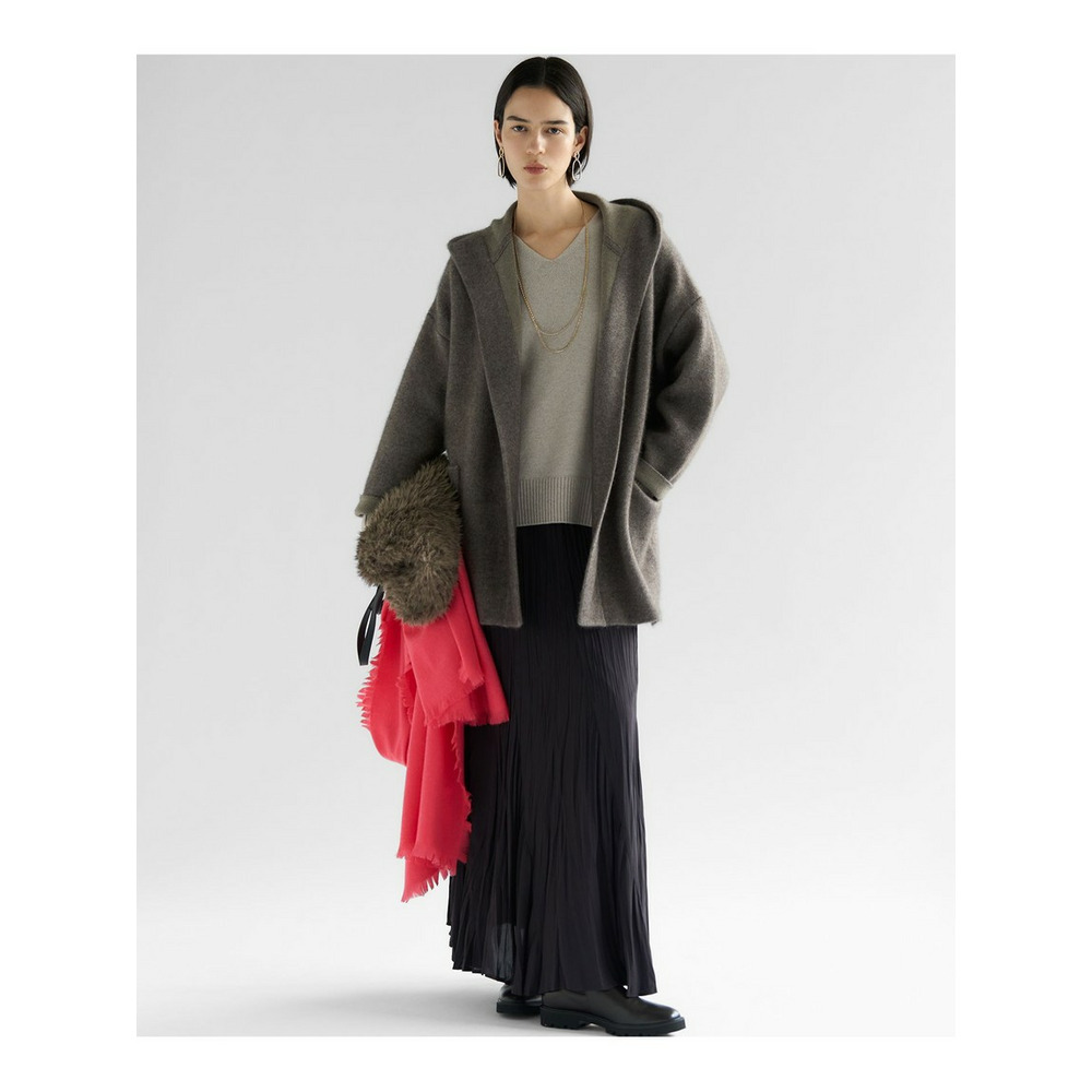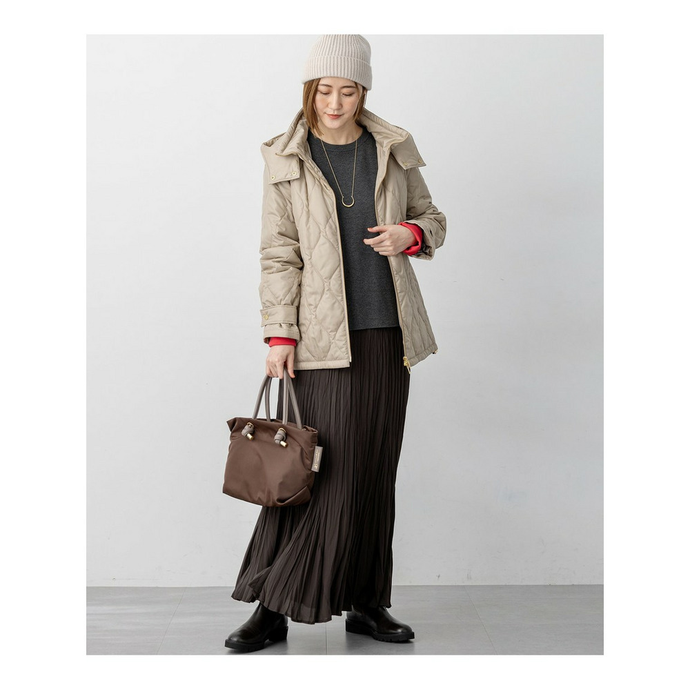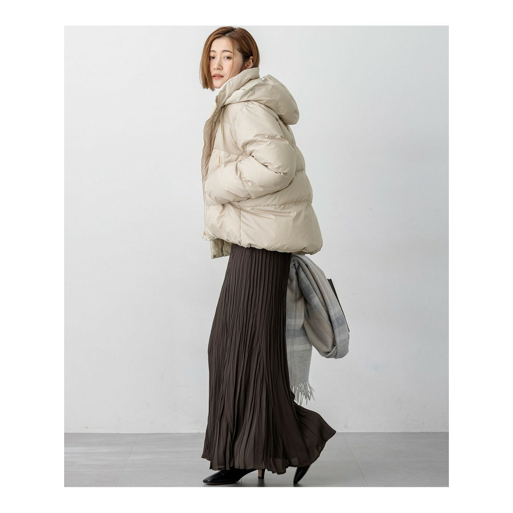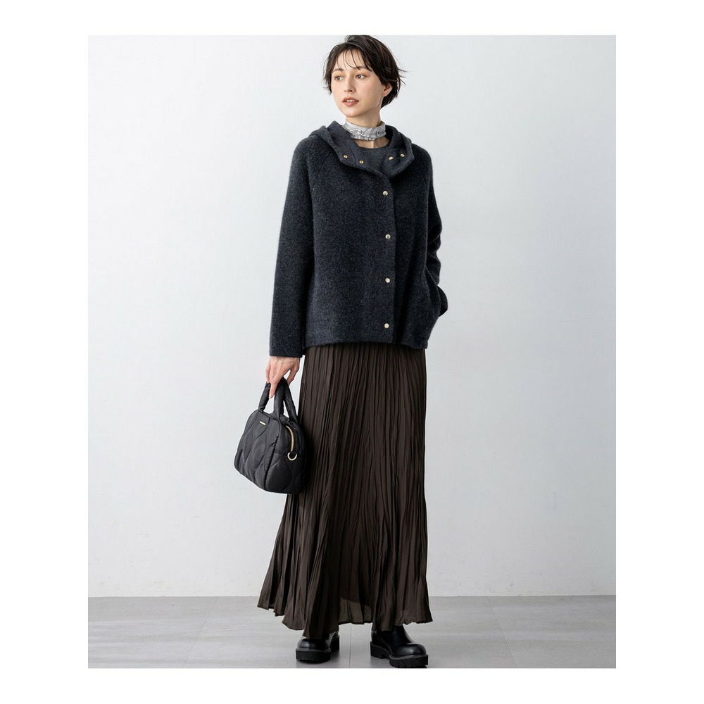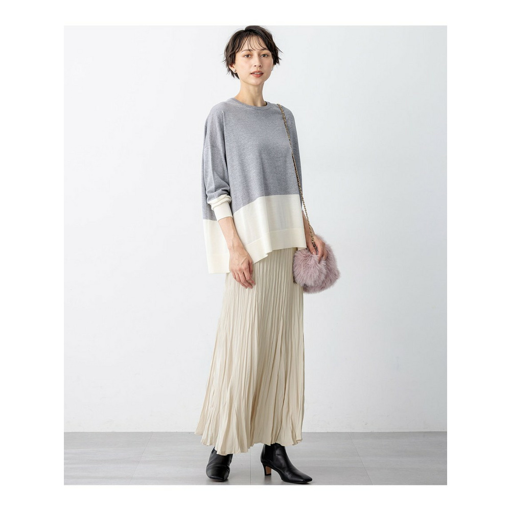 ランダムに絞ったプリーツ加工をかけて陰影のある表情を出したロングスカート。均一なプリーツよりもカジュアルな雰囲気ですが、広がりすぎないナローシルエットで上品な印象に。シワになっても気にならないため、旅行の時にもおすすめです。キレイめからカジュアルまで合わせやすく、ゆるめのニットや、ジャケットでも決まる万能アイテム。カラーは、柔らかなベージュ(#033)と秋らしいダークブラウン(#035)の2色展開です。