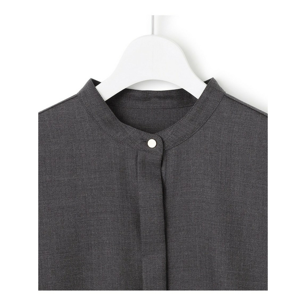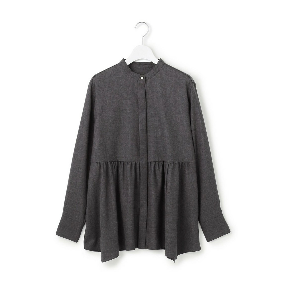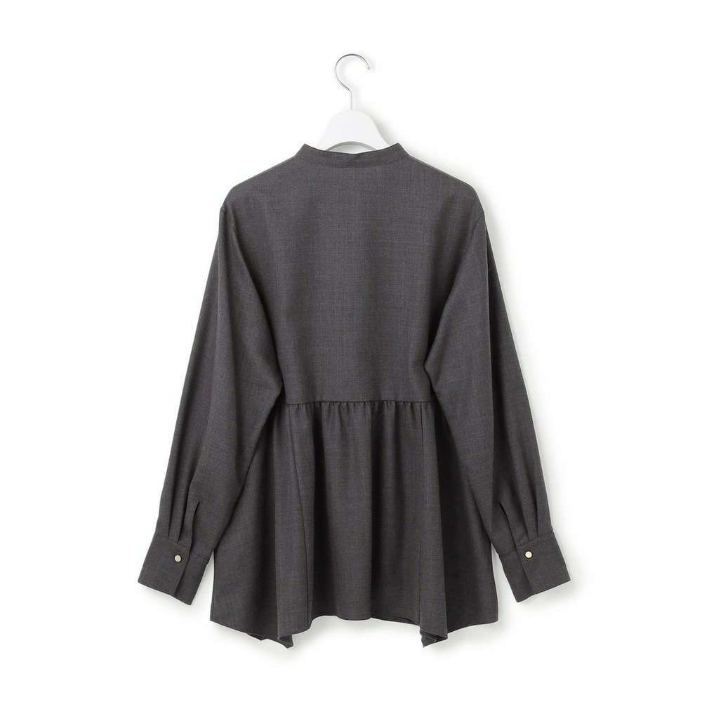 裾のイレギュラーヘムがポイントのデザインブラウスです。腰回りをカバーしてくれる長めのレングスなので、細身のパンツを合わせていただくとメリハリのあるスタイリングが叶います。また、同素材のワイドパンツやデニムのワイドパンツと合わせても今年らしいボリューム感のあるスタイリングをお楽しみいただけます。カラーは、こなれた印象のグレー(#004)と、品の良さを引き立てるネイビー(#075)の2色展開です。