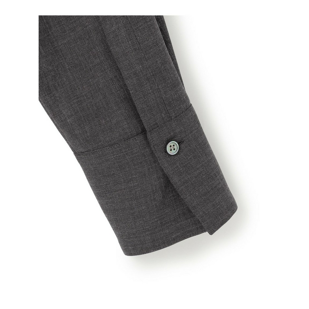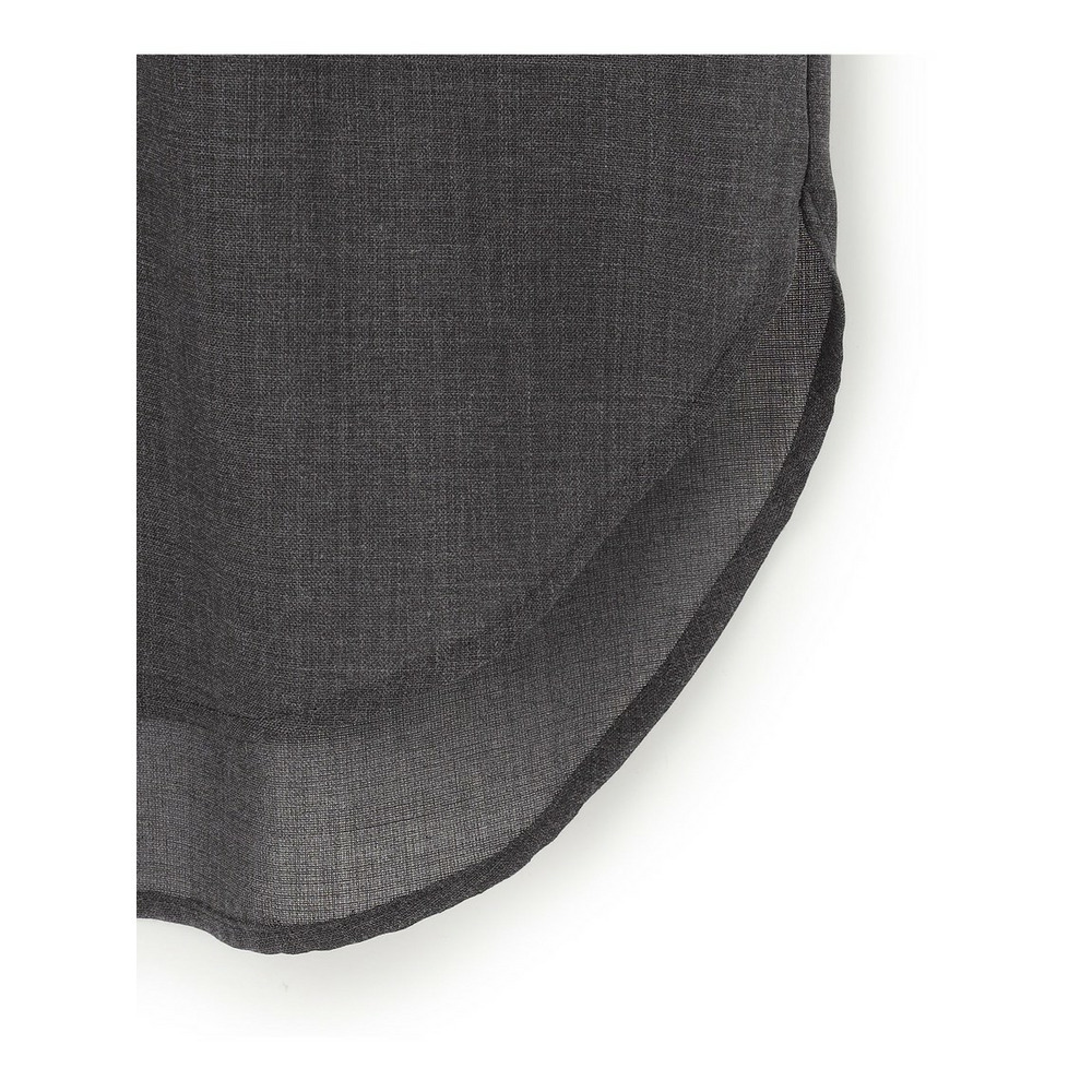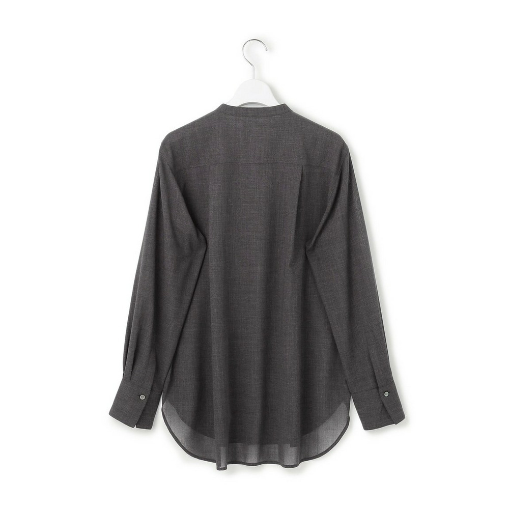 オーストラリア産メリノウールの細番手の糸を使用した23区オリジナル素材です。平織りの中でも軽く薄いボイルという組織を採用し、軽さと薄さを追求しつつも、生地の強度も損なわないように絶妙な設計にて織りあげています。細い番手の強撚タイプの糸を使用し、ドライタッチでさらりとしたタッチが特徴になっております。またスパンタイプのアンチピリングポリエステル繊維を配合することにより、シワになりにくく毛玉が起こりにくい機能性に加え、ウォッシャブルで、ソフトな風合いも併せ持っています。また、導電性カーボンを付着させた糸を混紡させることで、静電気が起こりにくく、ほこりや毛羽が付きづらくなるようにしています。