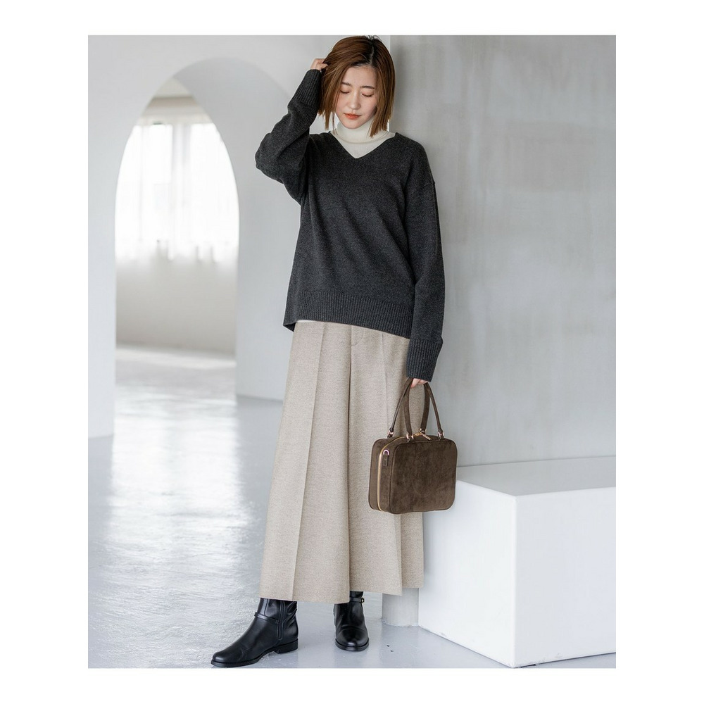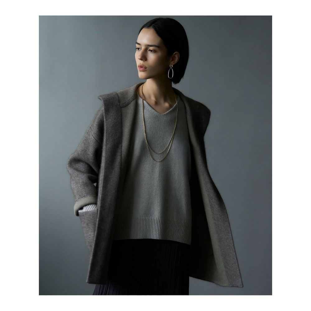 130年の歴史を持つイタリアのPAPIFABIO社の素材を使用しています。繊維長の長い良質なメリノウールで、ソフトなカシミヤを包み込むように丁寧に作られた素材です。上品ですっきりとした見た目でありながら、ハリとコシがあり、程よいふくらみと軽さが特徴です。ご自宅で手洗いできるのも嬉しいポイントです。