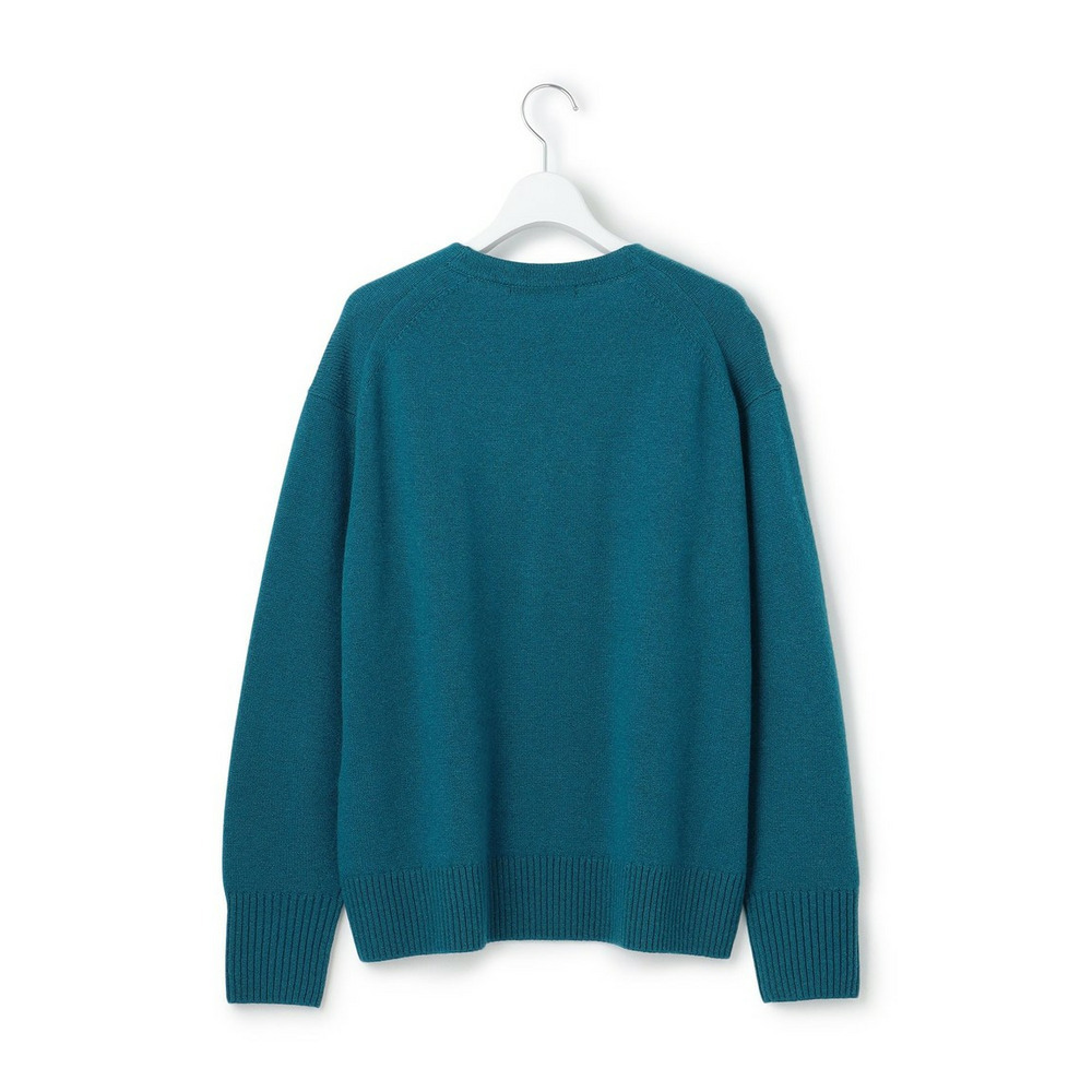 首元をすっきりと見せる、トリムレスなVネックプルオーバー。シンプルなシルエットながらも、さりげない前振りの切り替えと、存在感のある太めのリブがデザインのアクセントになっています。一枚でさらりと着ていただくのはもちろん、中にTシャツやブラウスをレイヤードして、こなれ感のあるスタイリングを楽しむのもおすすめです。オフィスシーンではきれいめパンツと合わせて上品に、休日はデニムやフレアスカートと合わせてカジュアルダウンするなど、幅広いシーンで活躍し、大人の女性らしい抜け感を演出します。カラーは、クリーンで洗練された印象のホワイト(#001)、どんな色とも相性が良いライトグレー(#003)、着こなしに深みを与えるグレー(#004)、華やかで女性らしいマゼンタ(#014)、優しく柔らかな印象のベージュ(#033)、知的で洗練された雰囲気のピーコックグリーン(#061)、爽やかで明るい印象を与えるライトグリーン(#062)の7色展開です。