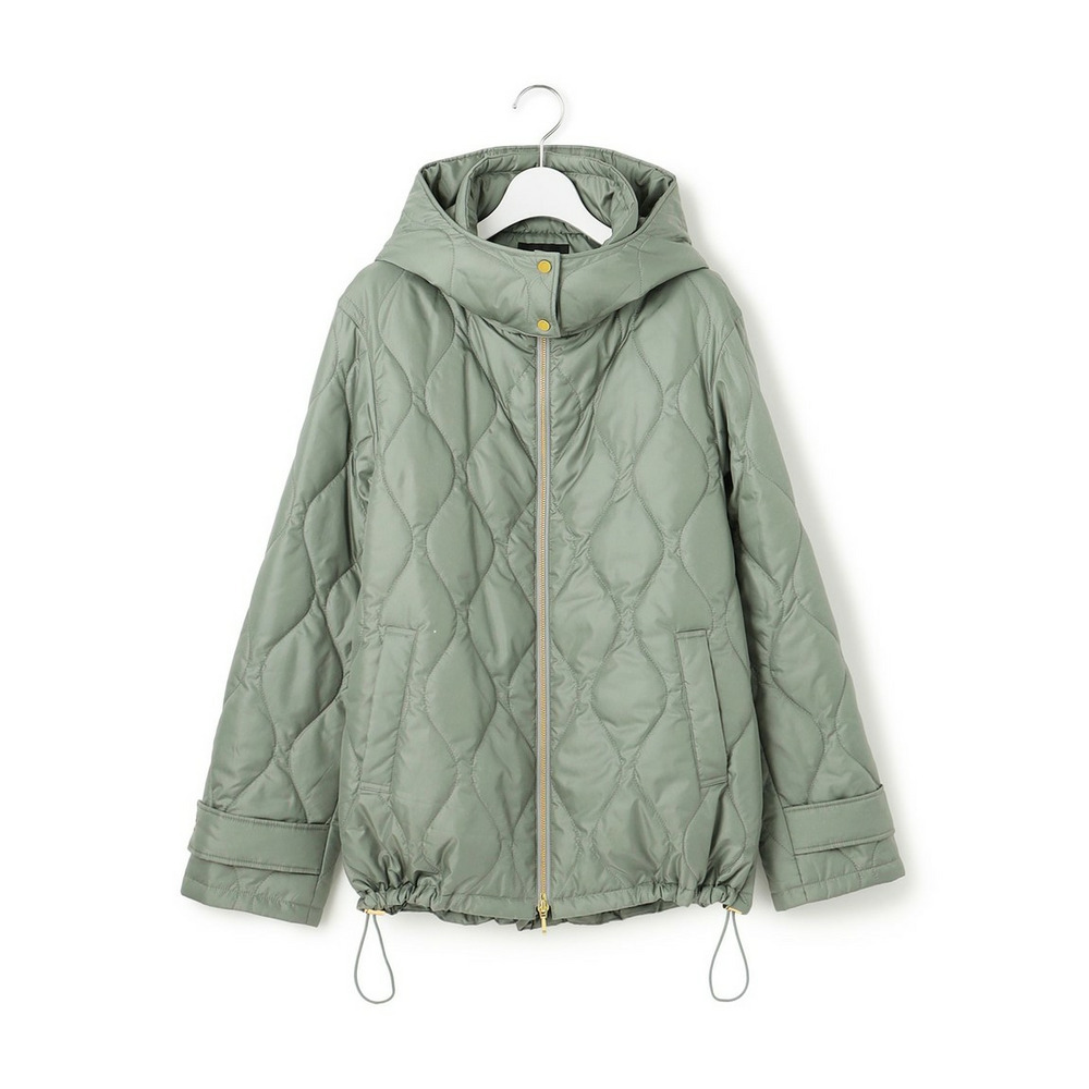 フードの取り外しができる中綿アウター。襟を少し高めに設定することで、フロントを開けて着た時も顔まわりを華やかな印象にしてくれます。襟端につけた金属ストッパーとフロントの金属ファスナーをアクセントにしています。逆開ファスナーにすることで、合わせるボトムによって着こなしを変えて楽しんでいただけます。裾を絞ってシルエットに丸みを持たせてスタイリングの変化を楽しんでも◎。カラーは、ナチュラルなベージュ(#033)、ニュアンスカラーのセージ(#053)、上品なダークグレー(#004)、モードなブラック(#005)の4色展開です。